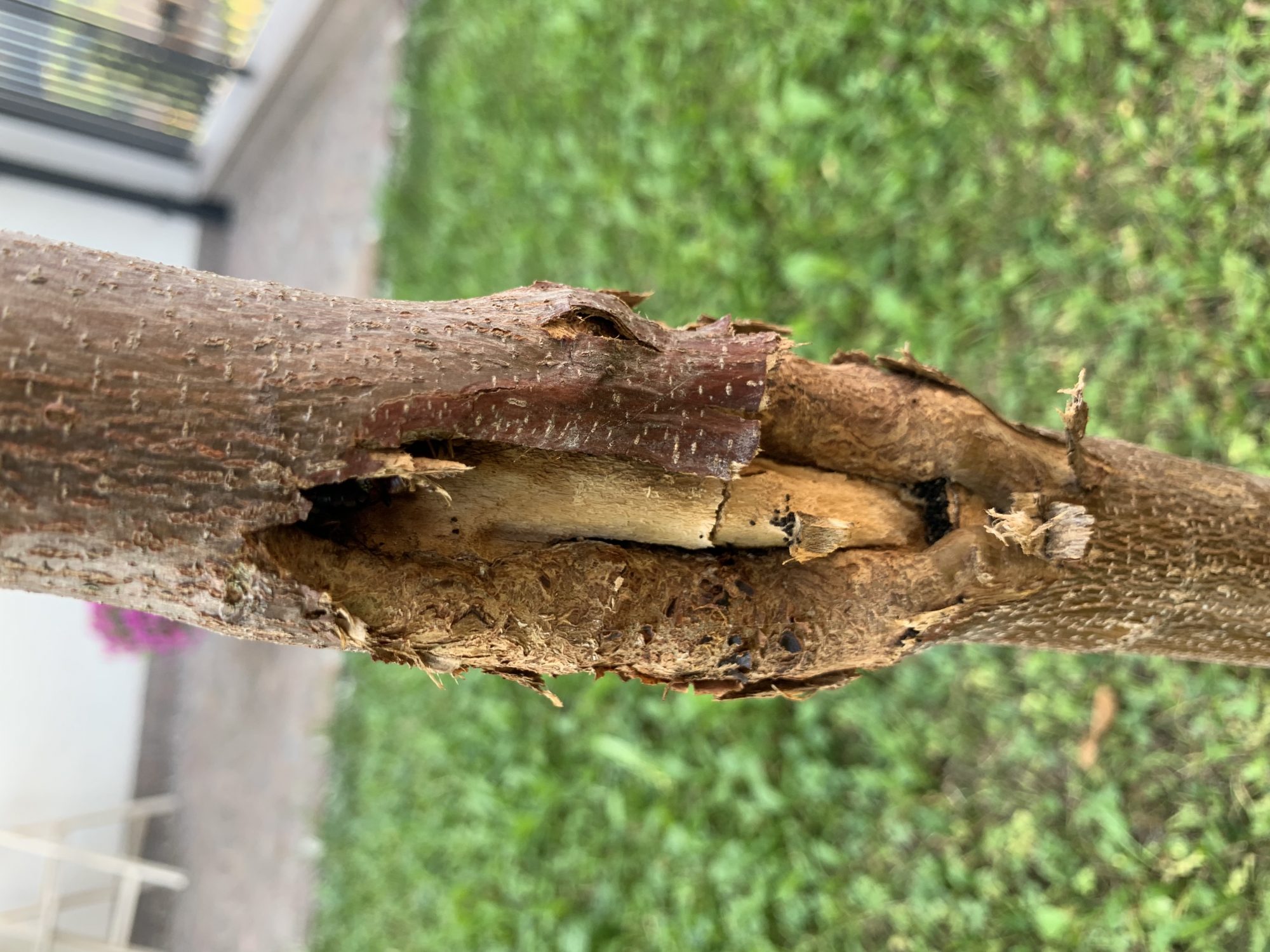 mein Ahorn, vor 3 Jahren gepflanzt, bilted seit letztem Jahr einen Spalt aus.