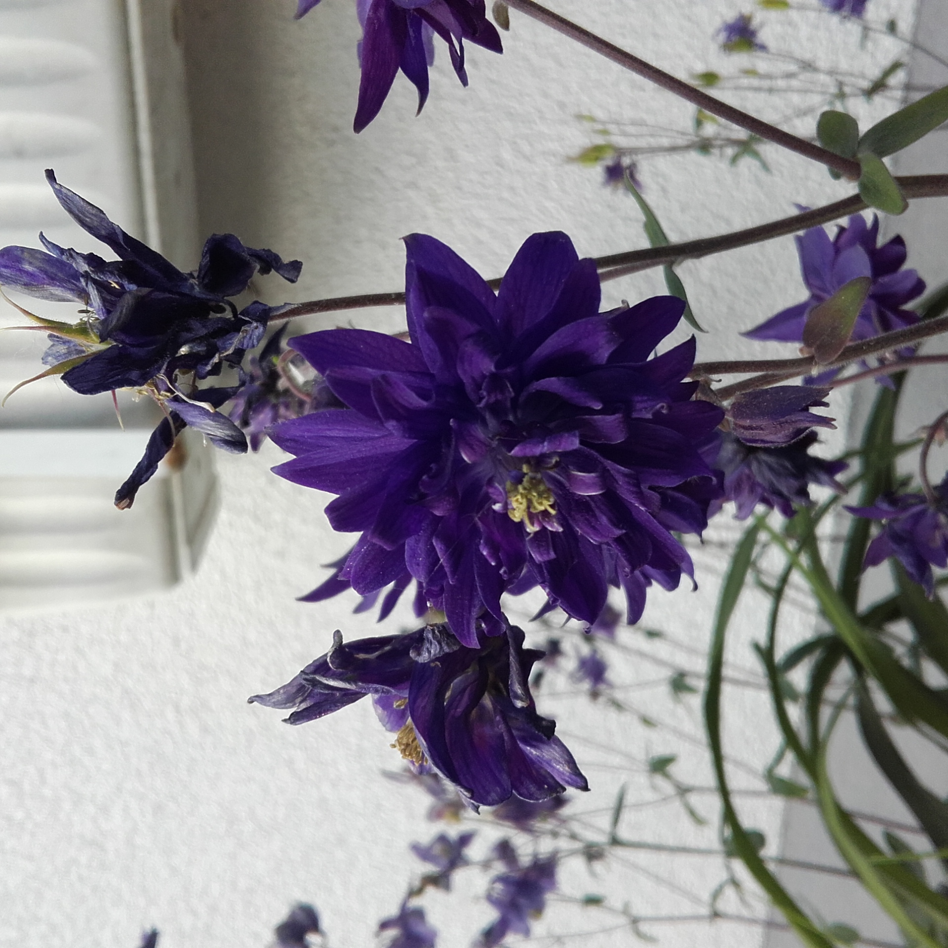Als ich hier eingezogen bin, hab ich alles Grünzeug, was auf der Loggia so zwischen den Steinplatten rauskam, rausgerissen. Dann kam ich mal längere Zeit nicht dazu, was die Akeleien dazu genutzt haben, wieder zu wachsen und bis zur Blüte zu kommen. Und wenn sie ausgeblüht haben, müssen sie wieder weg, weil sie da einfach recht unpassend stehen. Ruckzuck sind sie aber wieder da. Die lassen sich so leicht nicht unterkriegen.
