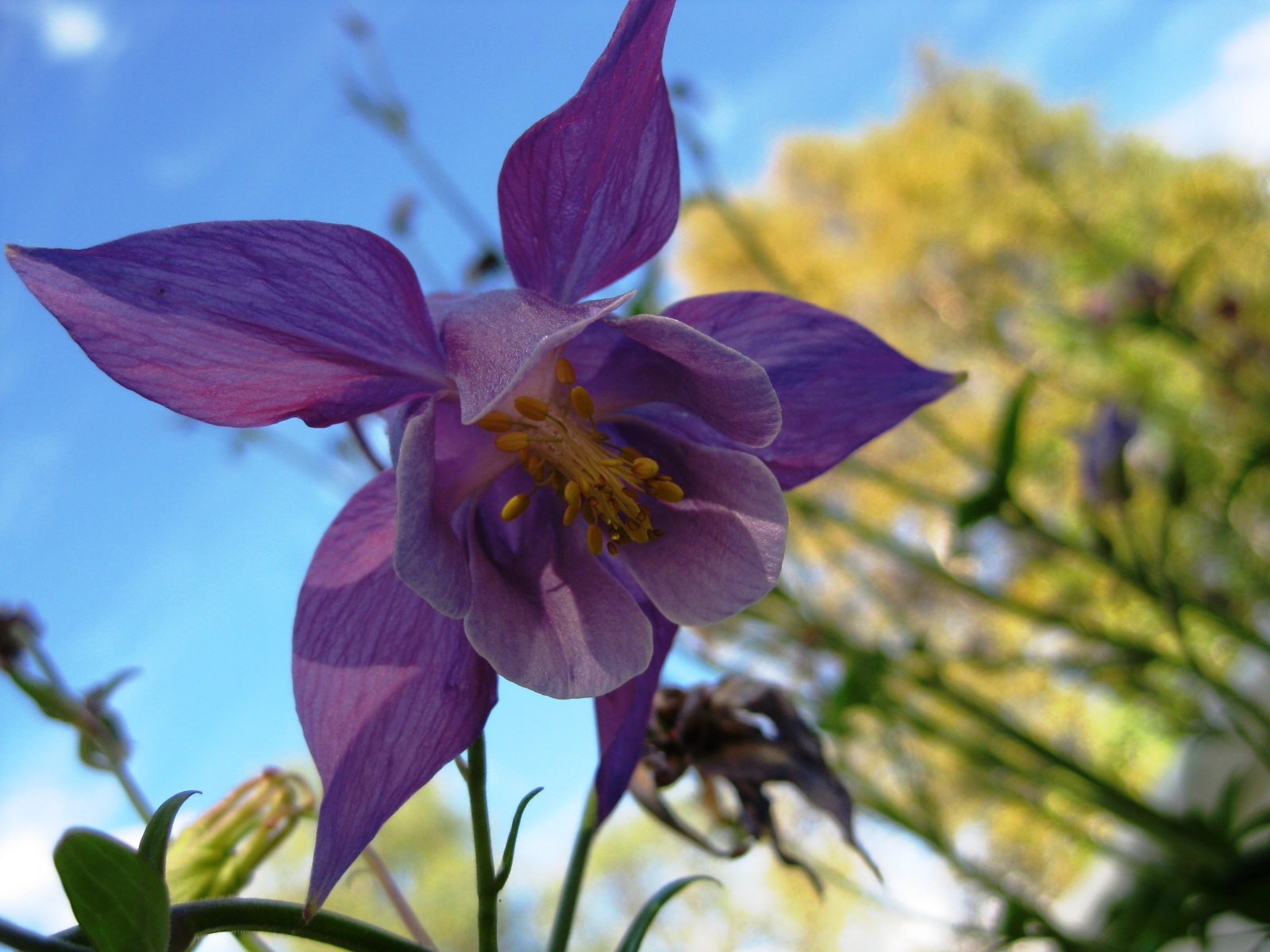 Als ich hier eingezogen bin, hab ich alles Grünzeug, was auf der Loggia so zwischen den Steinplatten rauskam, rausgerissen. Dann kam ich mal längere Zeit nicht dazu, was die Akeleien dazu genutzt haben, wieder zu wachsen und bis zur Blüte zu kommen. Und wenn sie ausgeblüht haben, müssen sie wieder weg, weil sie da einfach recht unpassend stehen. Ruckzuck sind sie aber wieder da. Die lassen sich so leicht nicht unterkriegen.