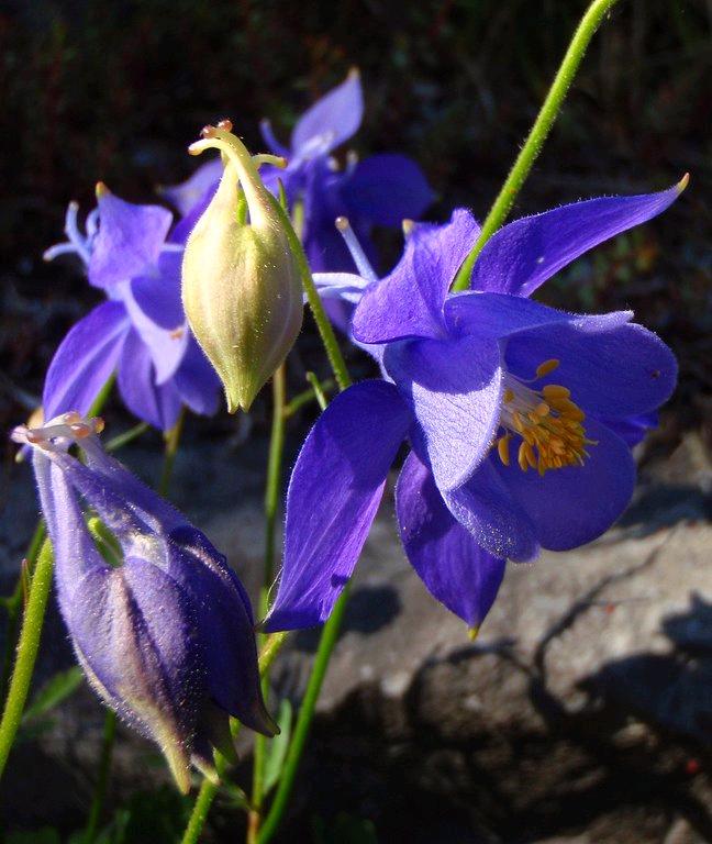 Sind die Blüten nickend, oder zur Seite ausgerichtet? Die Sporne gerade oder eingedreht? Und kann es sein, dass das dunkle Blau an der Innenseite der Blüte etwas blasser ist, eher so hellblau? Oder vielleicht innen ganz Weiß und die blüten schauen nach oben?