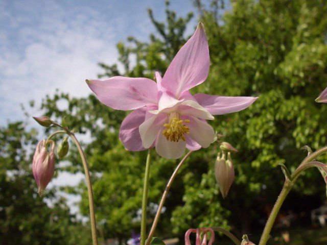 Letztens hab ich noch von mir selbst gesäte Akeleien umgesiedelt, weil sie dort an ihrem alten Standort hinter dem riesigen Wurmfarn einfach nicht zur Geltung kamen. Sie hatten zwar bereits Blüten, aber da ich gleich gegossen hatte, ging's ihnen auch nach kurzer Zeit wieder gut. Unter den Umsiedlern ist auch meine zweifarbige (innen hell, außen dunkelpink), um die es mir bei der Aussaat eigentlich ging.