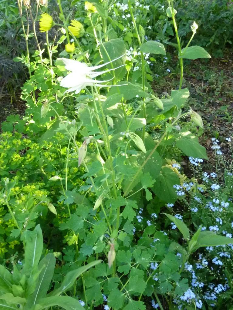 Und weil es Ameisen ja so gut wie überall gibt (auch in Pflasterritzen und anderswo), wachsen Akeleien plötzlich mal hier oder auch dort...