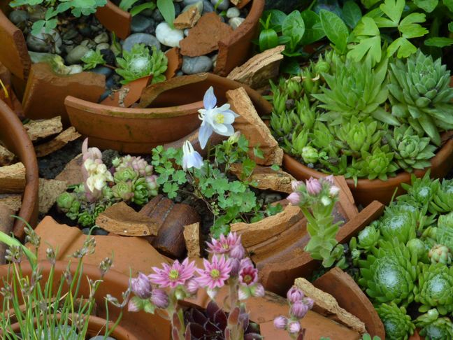 Auch im Tonscherbengarten blühen noch kleine Zwergakeleien