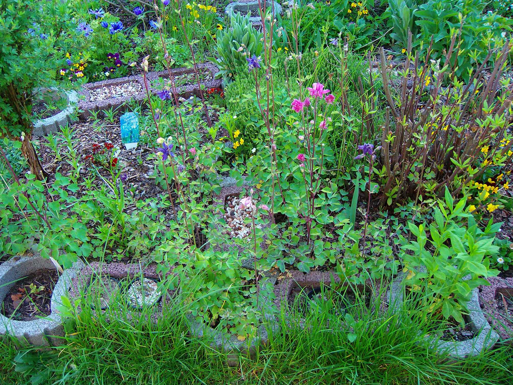 Die rosa Akelei in der Mitte, Aquilegia "Kristall" ?, und die Aquilegia atrata finde ich richtig toll