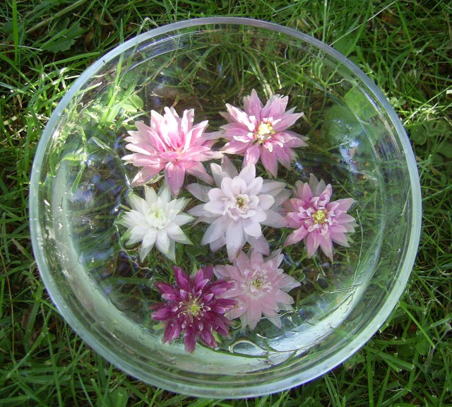 Weil ich die Blüten nicht gleich wegwerfen wollte, hab ich sie hinterher ins Wasser gelegt, sah aus wie Mini-Seeröschen Und dann ist der Spieltrieb mit mir durchgegangen, und ich hab noch ein bisschen rumexperimentiert, aber seht selbst