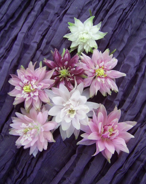 Heute habe ich mal die Nachkommen einer spornlosen, "Barlow"-artigen Akelei fotografiert. Die Mutter tauchte vor 3 Jahren bei mir auf, bisher hatte ich immer nur "normale". Ich fand sie so schön, dass ich gleich im ersten Jahr Samen ausgesät habe, von diesen Nachkommen blühen jetzt mehrere und sogar in verschiedenen Farbtönen! Ich bin ganz begeistert Die Mutterpflanze gibt es - aus welchem Grund auch immer - leider nicht mehr, umso froher bin ich über den Nachwuchs.