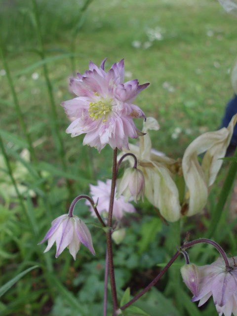 Letztens hab ich noch von mir selbst gesäte Akeleien umgesiedelt, weil sie dort an ihrem alten Standort hinter dem riesigen Wurmfarn einfach nicht zur Geltung kamen. Sie hatten zwar bereits Blüten, aber da ich gleich gegossen hatte, ging's ihnen auch nach kurzer Zeit wieder gut. Unter den Umsiedlern ist auch meine zweifarbige (innen hell, außen dunkelpink), um die es mir bei der Aussaat eigentlich ging.