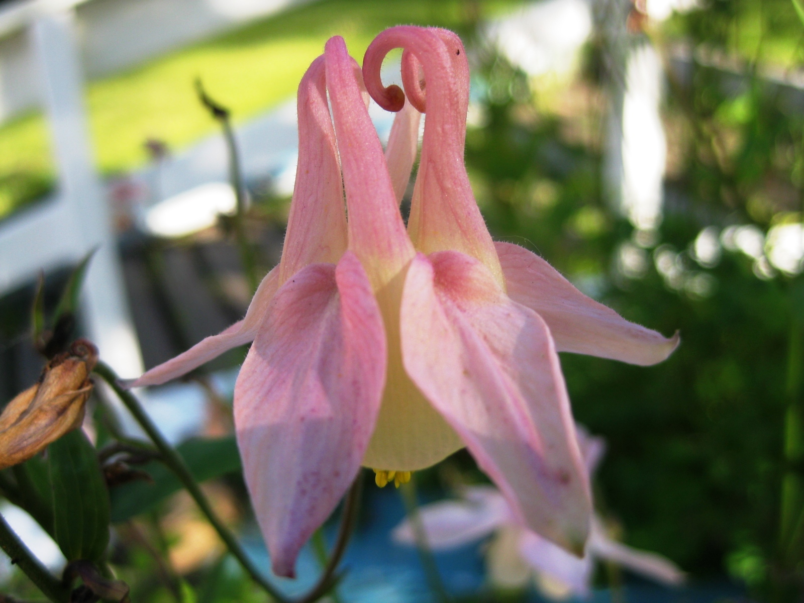 Als ich hier eingezogen bin, hab ich alles Grünzeug, was auf der Loggia so zwischen den Steinplatten rauskam, rausgerissen. Dann kam ich mal längere Zeit nicht dazu, was die Akeleien dazu genutzt haben, wieder zu wachsen und bis zur Blüte zu kommen. Und wenn sie ausgeblüht haben, müssen sie wieder weg, weil sie da einfach recht unpassend stehen. Ruckzuck sind sie aber wieder da. Die lassen sich so leicht nicht unterkriegen.
