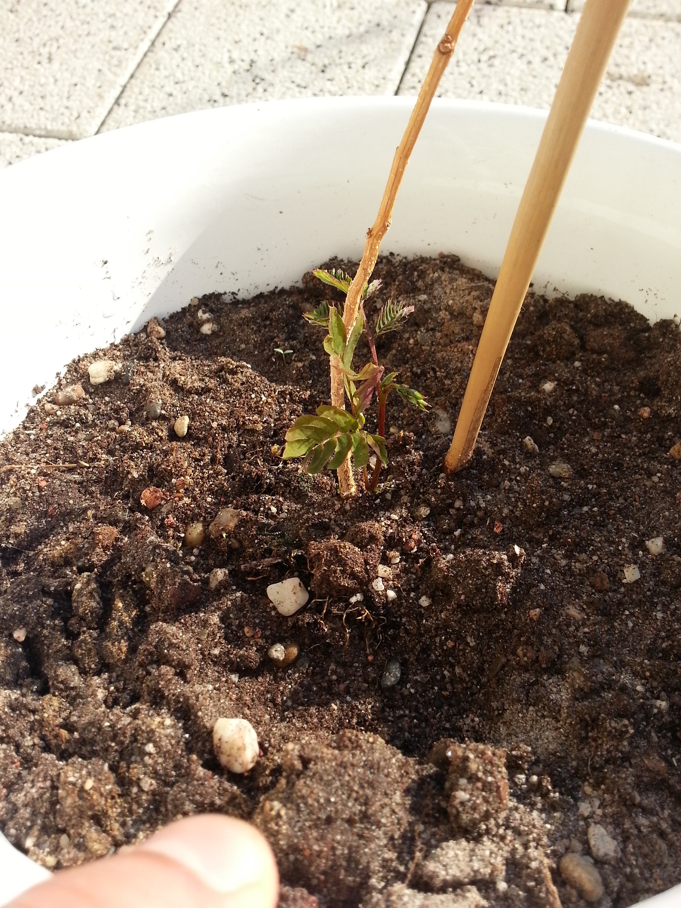 wir haben uns letztes Jahr eine Albizia Summer Chocolat gekauft. Sie wuchs letztes Jahr eigentlich garnicht. Dieses Jahr hingegen treibt sie an einer Stelle neu aus. Am alten "Stamm" dagegen tut sich garnichts
