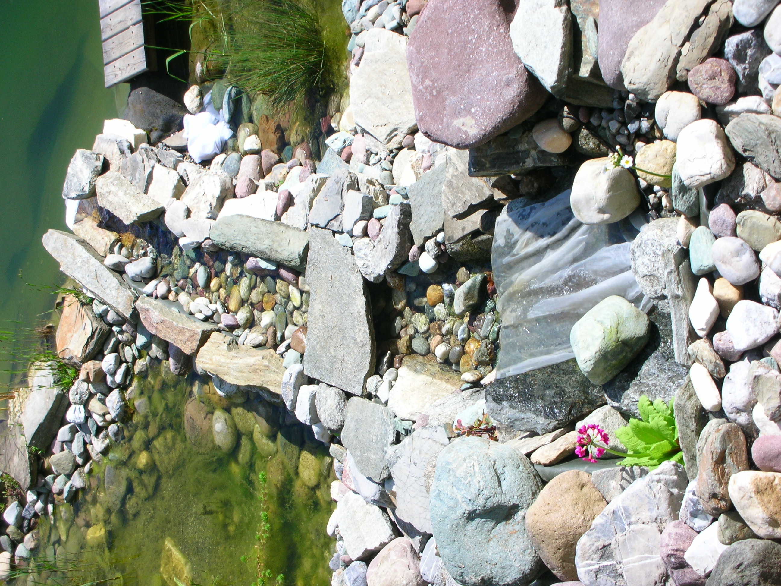 Weiterhin sollten keine Nährstoffe in den Teich gelangen können, wie z.B. abgestorbene Pflanzenteile, Laub im Herbst, Fischkot und -futter und Dünger, der auf den Beeten rundherum ausgebracht wurde (wird bei Regen in den Teich gespült).