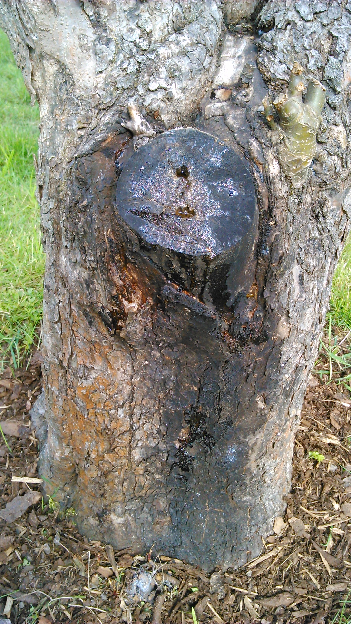 - es läuft irgendein stinkendes Sekret aus dem Baum und rundherum ist alles schwarz (siehe Fotos)