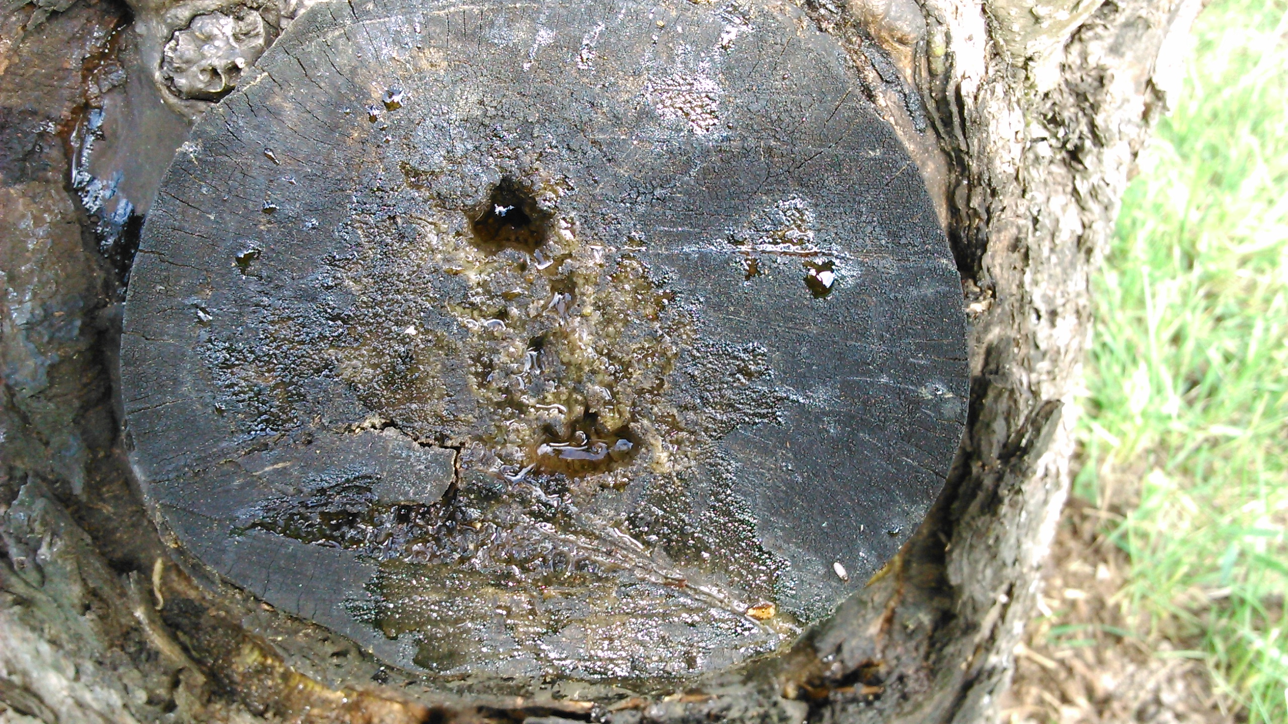 - es läuft irgendein stinkendes Sekret aus dem Baum und rundherum ist alles schwarz (siehe Fotos)