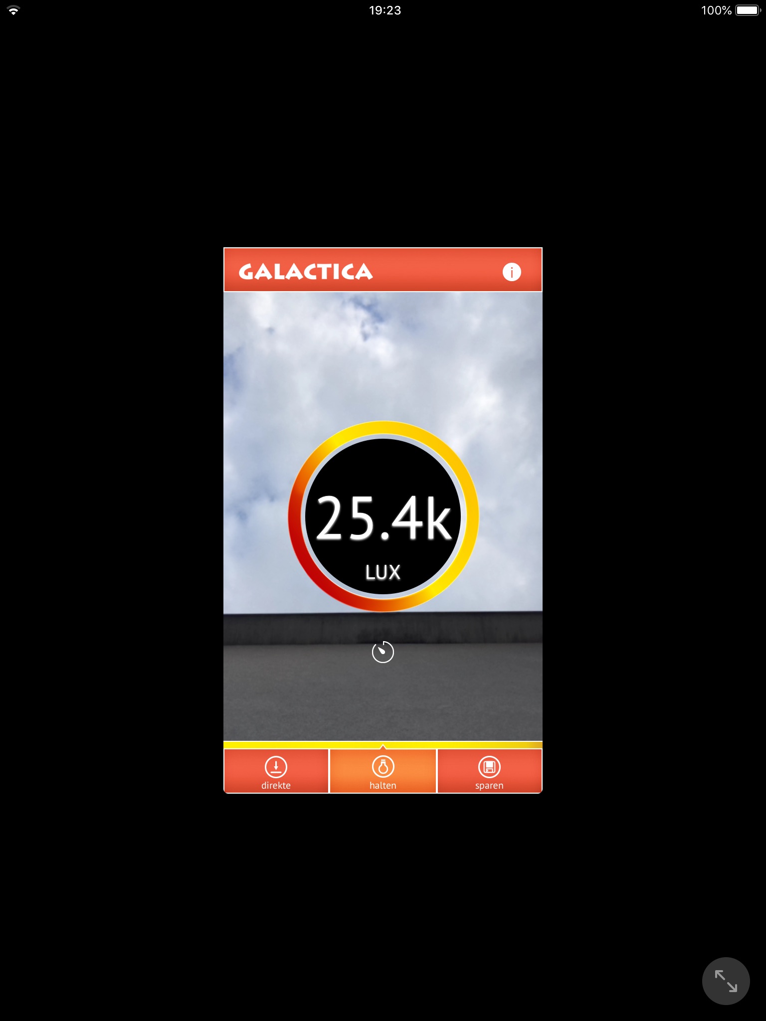 — Galactica Luxmeter kennt auch nur gewisse Werte und weicht F/B stark ab.