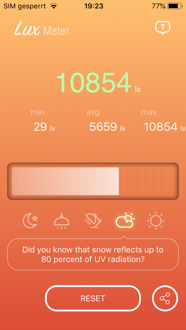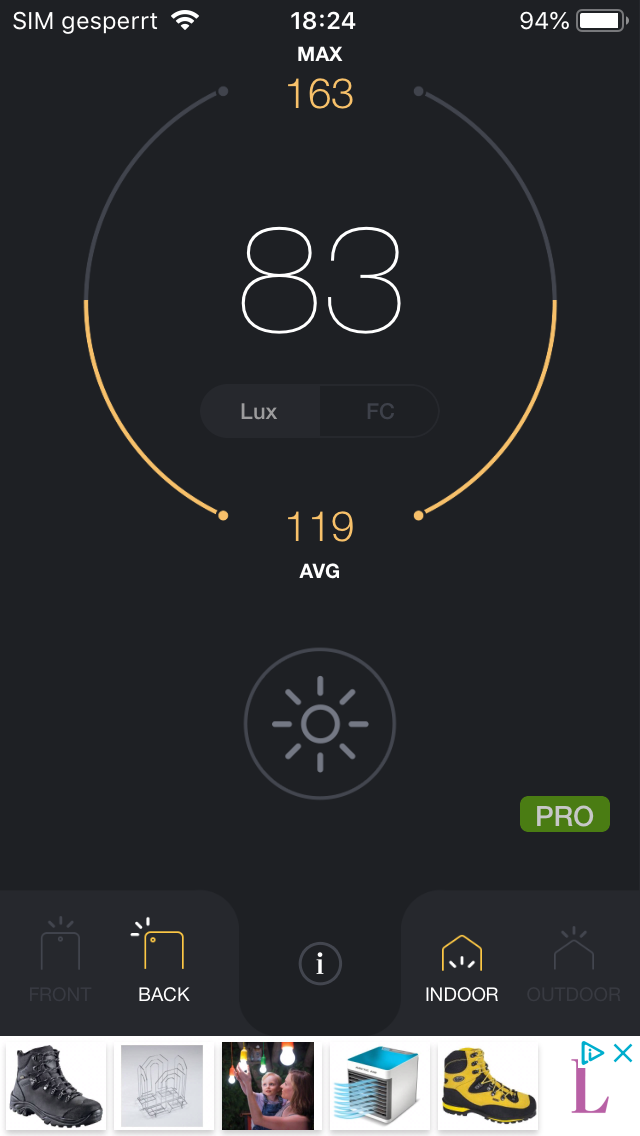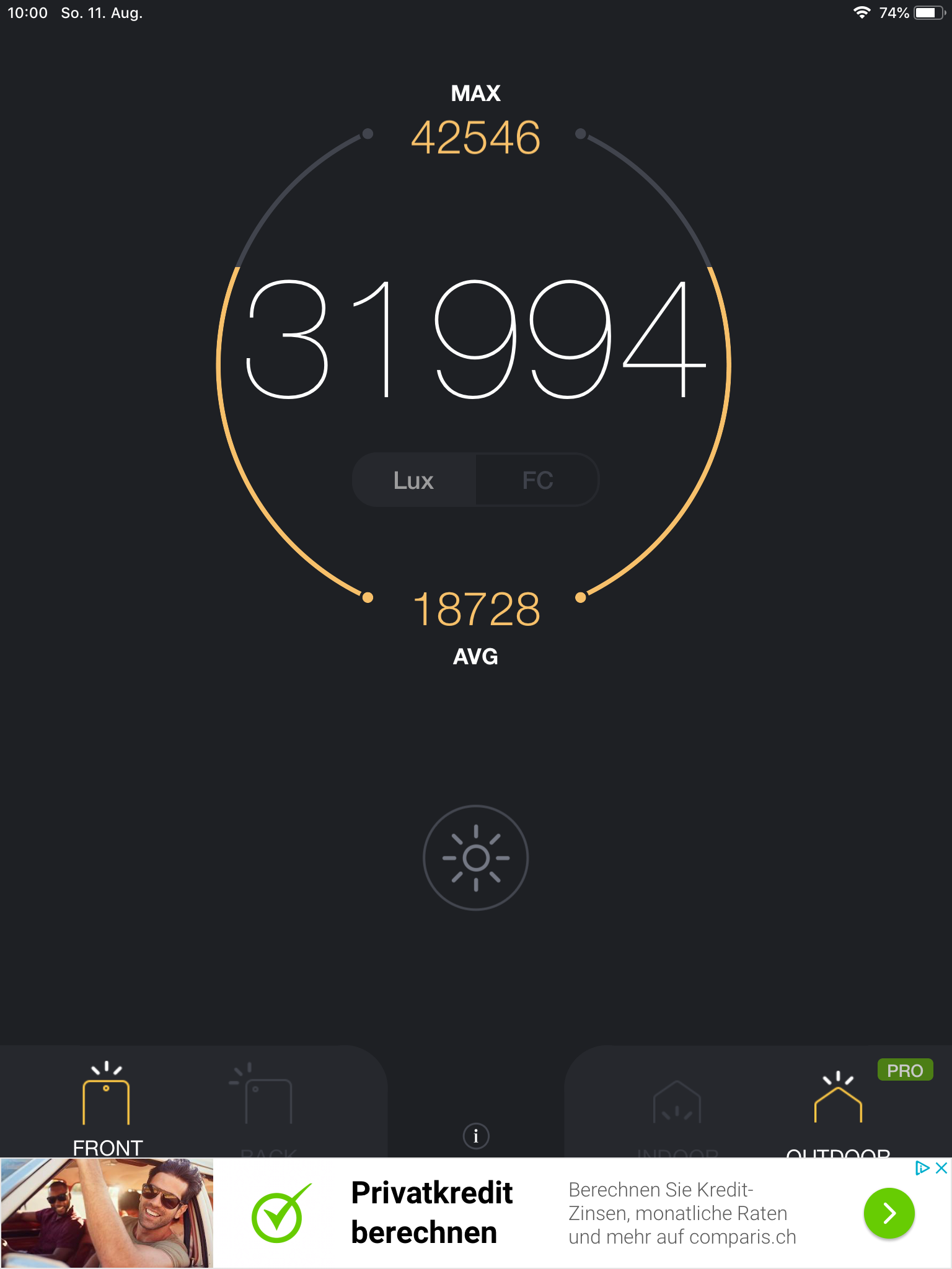— Lux Meter - Lumi misst nur mit der Frontkamera.
