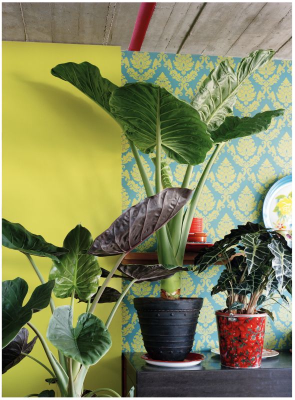 Wesentlich kleiner und kompakter, aber nicht minder dekorativ ist Alocasia sanderiana. Sie verfügt über metallisch glänzende Blätter mit markanten weißen Blattnerven und eingebuchteten Blatträndern. Alokasien müssen gleichmäßig feucht gehalten werden, und eine Düngegabe alle zwei Wochen von April bis September ist empfehlenswert. Als Tropenbewohnerin benötigt Alocasia eine hohe Luftfeuchtigkeit und sollte regelmäßig besprüht werden. Solchermaßen rücksichtsvoll und aufmerksam gepflegt, sorgt sie für Wohlfühlatmosphäre im Raum und hilft uns während unserer Entspannungsphasen zuhause, den Druck der Außenwelt zu vergessen. Eine Pflanze ist eben mehr als nur Dekoration. Sie ist eine Verbündete und im Falle der Alocasia eine Verbündete mit besonders starken Nerven.