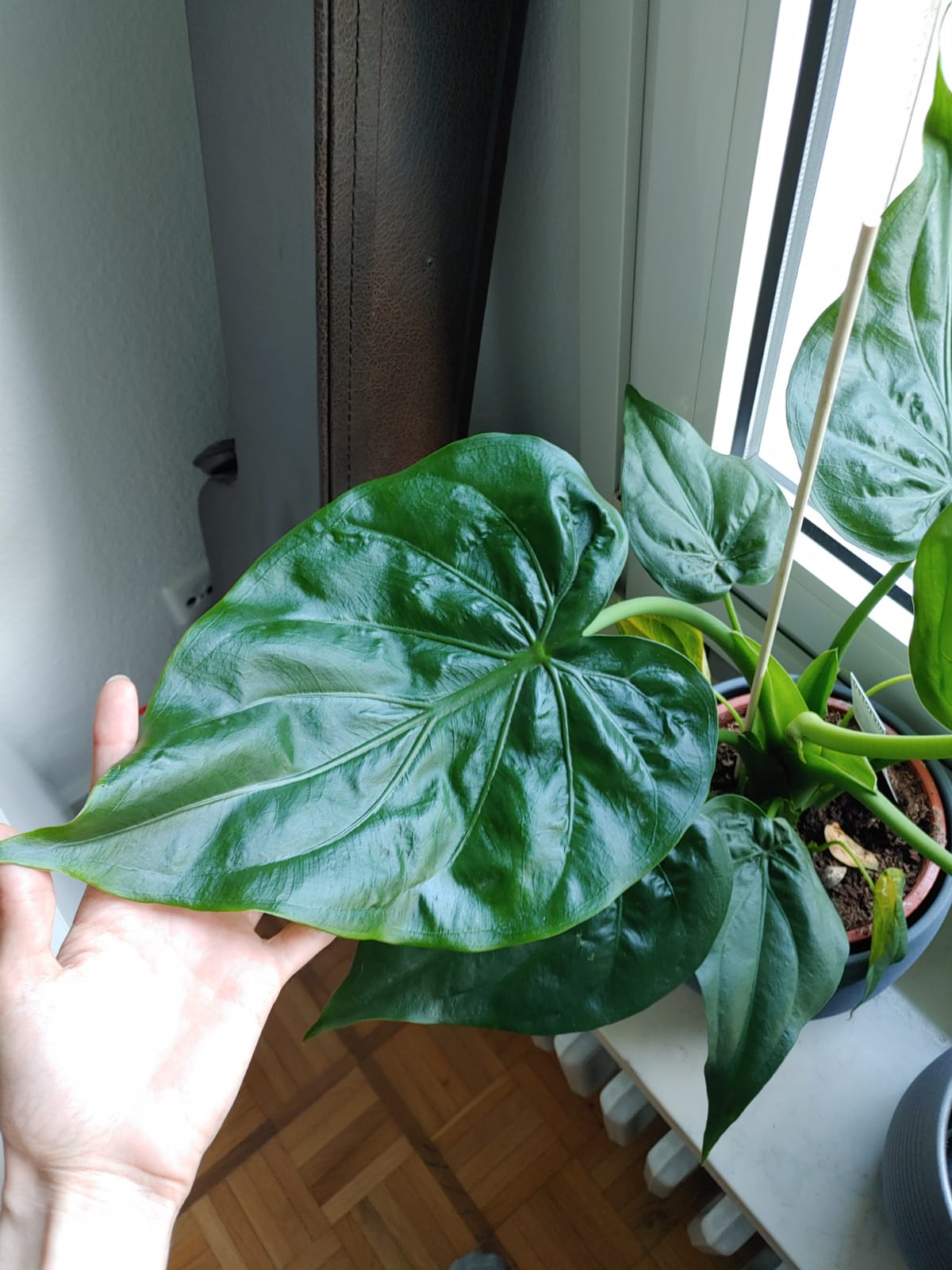 Irgendwie kenne ich das von A. calidora so, dass die Blattadern zum Blattrand hin verlaufen und sich nicht parallel dazu zur Spitze ziehen. Die, die ich bekommen habe sieht mir eher wie eine culcullata aus und auf dem Kartonschildchen, das in der Erde steckte, stand leider auch nur "Alocasia". Wow, dankeschön ...