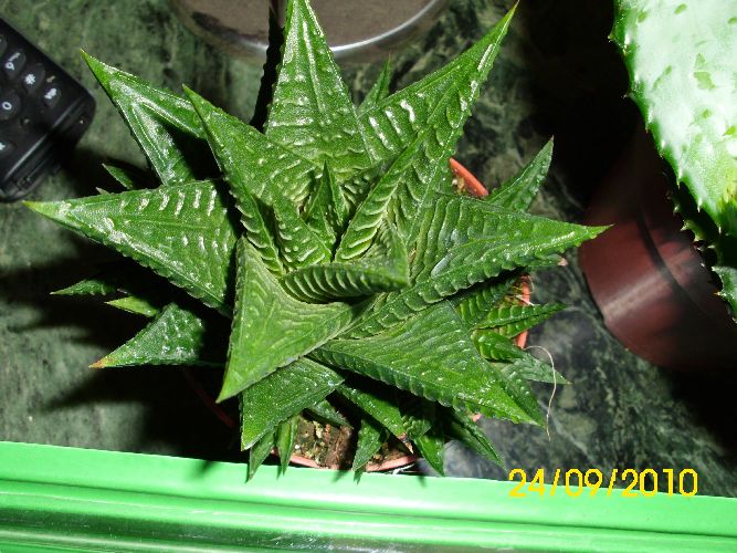 und mein liebes Töchterchen hat bei meiner Haworthia doch tatsächlich den einzigen Blütentrieb dieses Jahres abgebrochen, kaum, dass man erste Knospen erkennen konnte