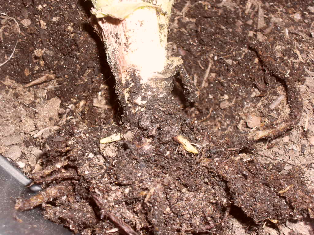 was soll ich tun?habe sie schon unter den Tisch gestellt damit kein Wasser mehr aufgenommen wird.Soll ich umtopfen?