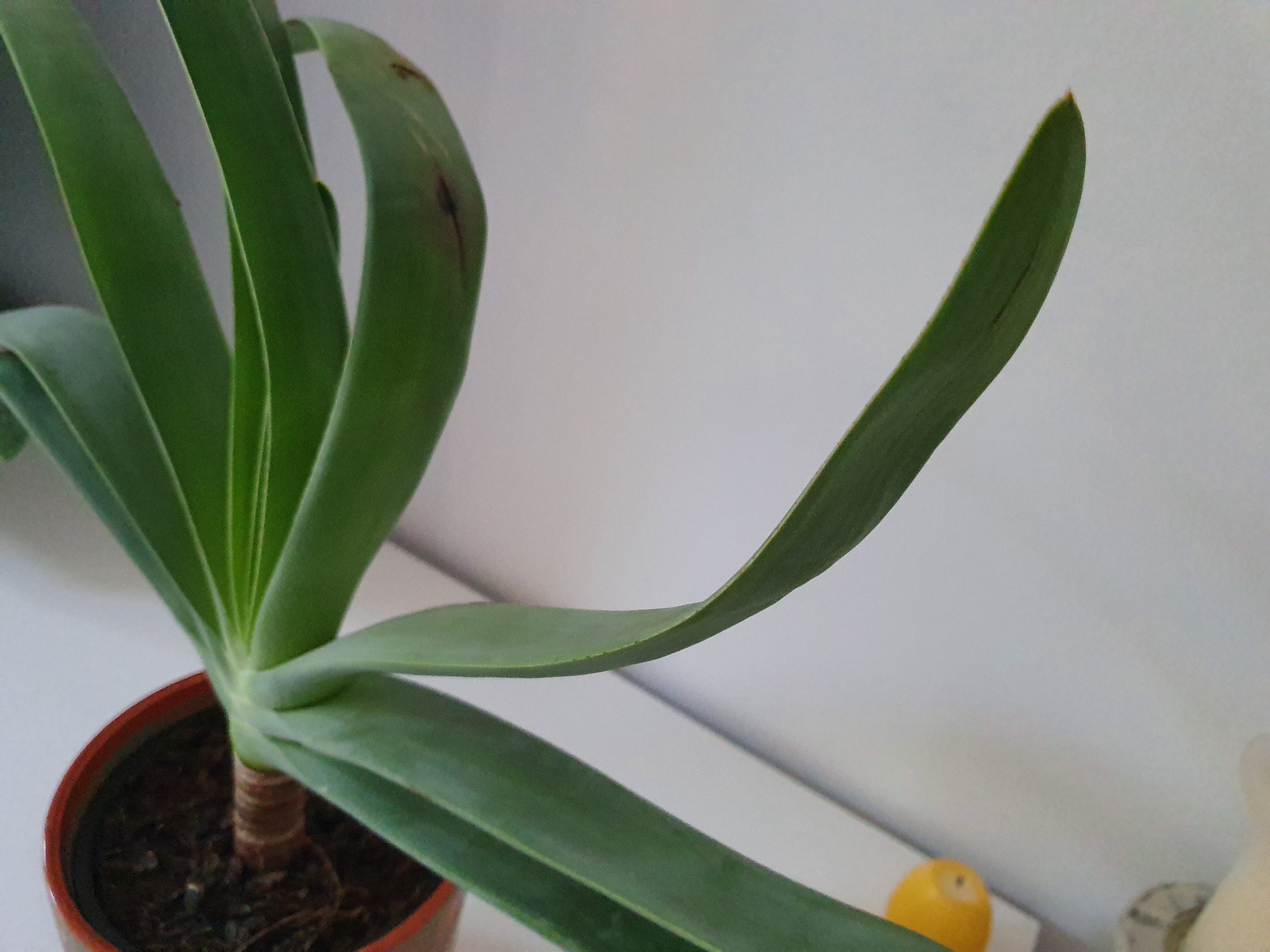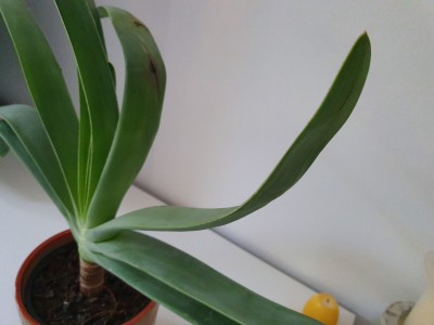 Übrigens wird die (einigermassen gesunde) Pflanze im Sommer draussen am glücklichsten sein. Jedoch erst sorgfältig an UV gewöhnen. Die Blattfärbung wird sich dabei wahrscheinlich wie bei Aloe von saftig-grün weg verändern (rötlich-gräulich-grün).