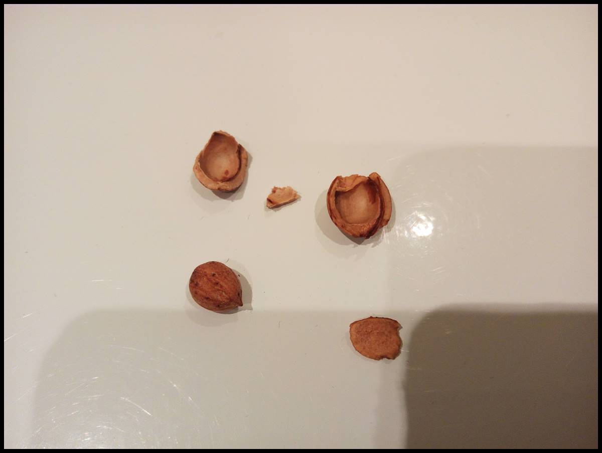 Die Samen haben also eine offenbar sehr dicke, nussartige Schale und innen ist ein einzelner, haselnussartiger Samen zu finden.