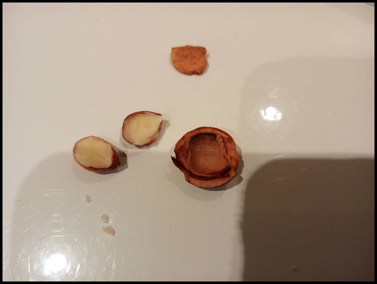 Die Samen haben also eine offenbar sehr dicke, nussartige Schale und innen ist ein einzelner, haselnussartiger Samen zu finden.