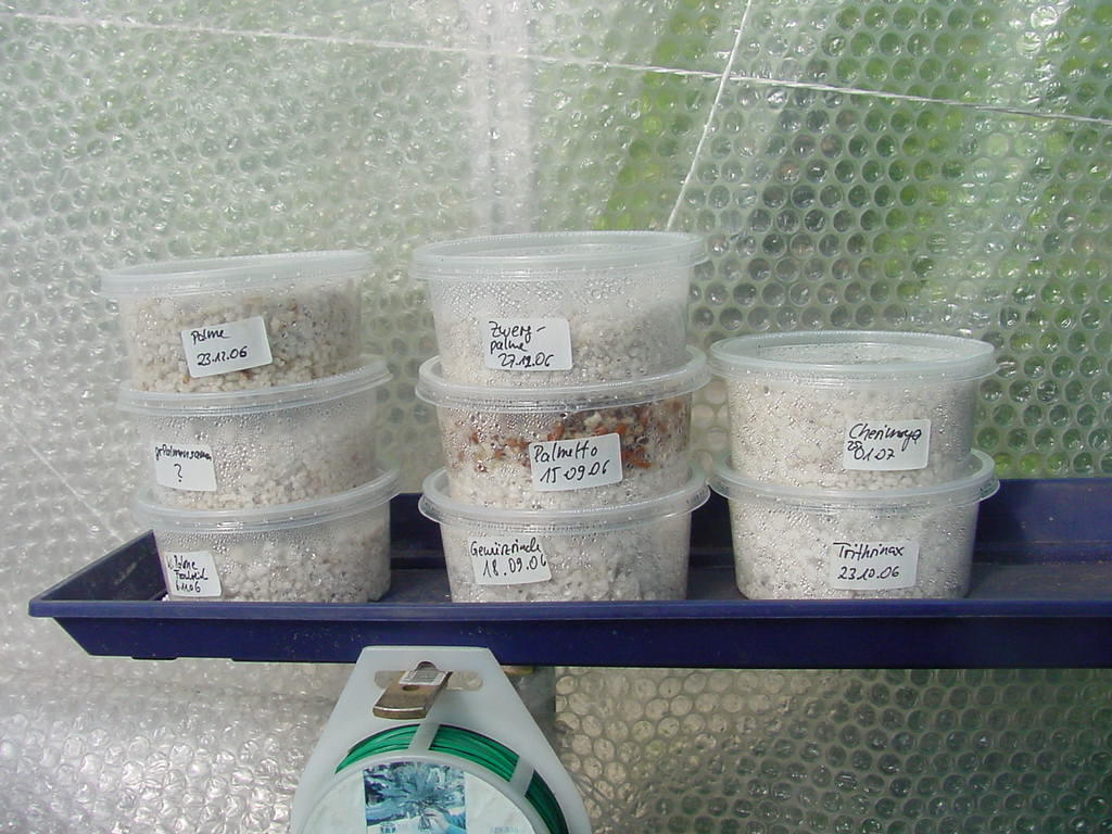 Meine Tochter hat sich bei REWE fertig gepuztes Obst in Plastikbecher gekauft. Als sie die entsorgen wollte, habe ich sie sofort konfisziert. Ich finde das sind ideale Minigewächshäuschen. Und wie man sieht, ists darin muckelig warm.