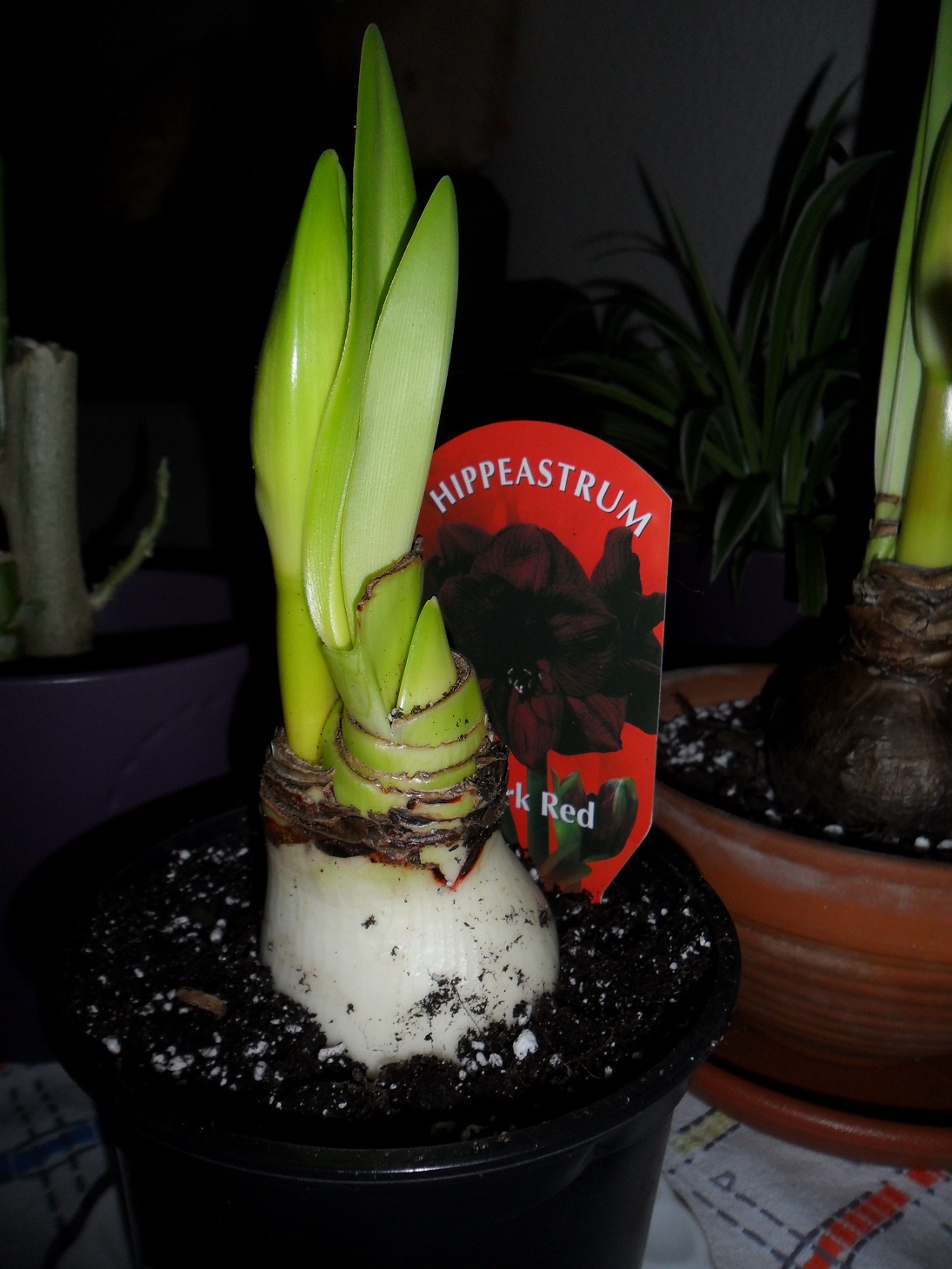 Als ich dann mittags nach der FH wieder nach Hause kam, hatte meine Mama auch noch eine A. Dark Red besorgt Blöd ist aber bei den beiden, dass die viel zu tief eingetopft waren, in dieses komische Substrat, ich weiß aber nicht wie das heißt. Jedenfalls waren die äußeren Schalen matschig, wir haben die dann entfernt und neu eingetopft. Die andere Ama, die ich Silvester bekommen hatte (habe darüber berichtet) war auch in diesem komischen Substrat, die habe ich direkt auch mal umgetopft und die hatte ebenfalls matschige äußere Schalen. Naja, ich hoffe, es hat keine großere Schäden davongetragen.