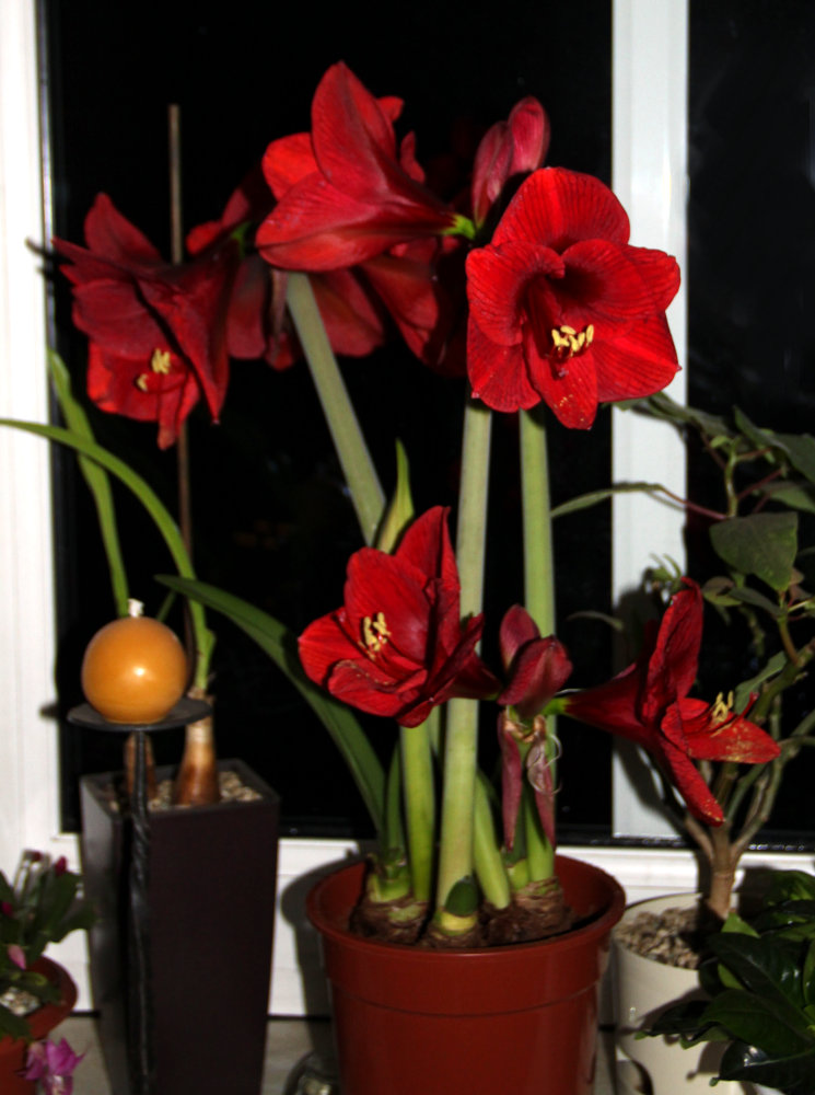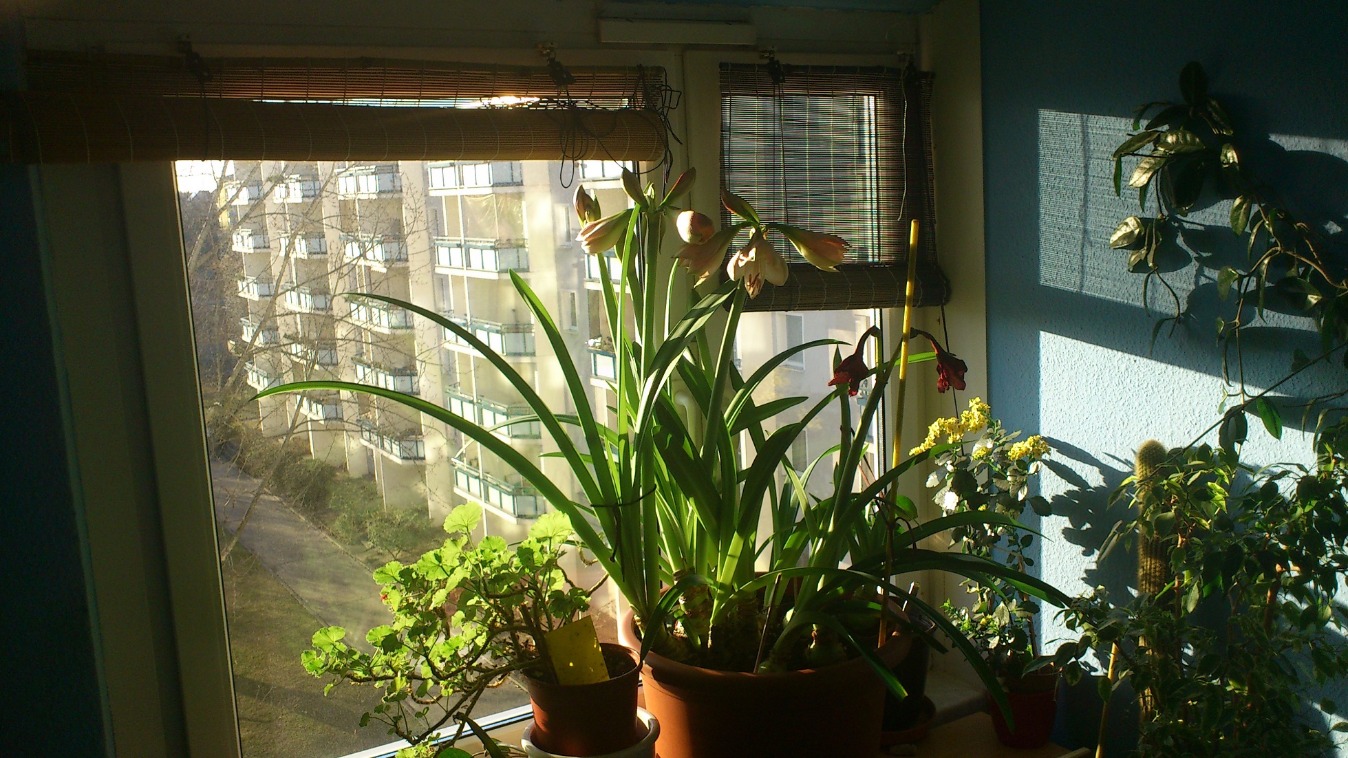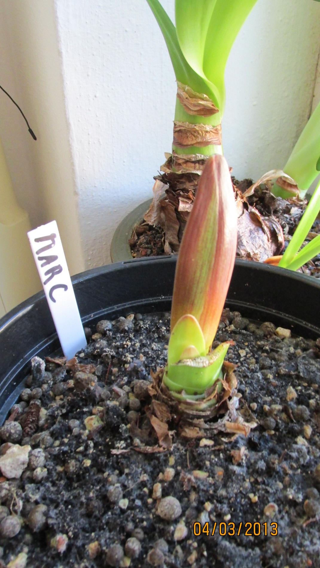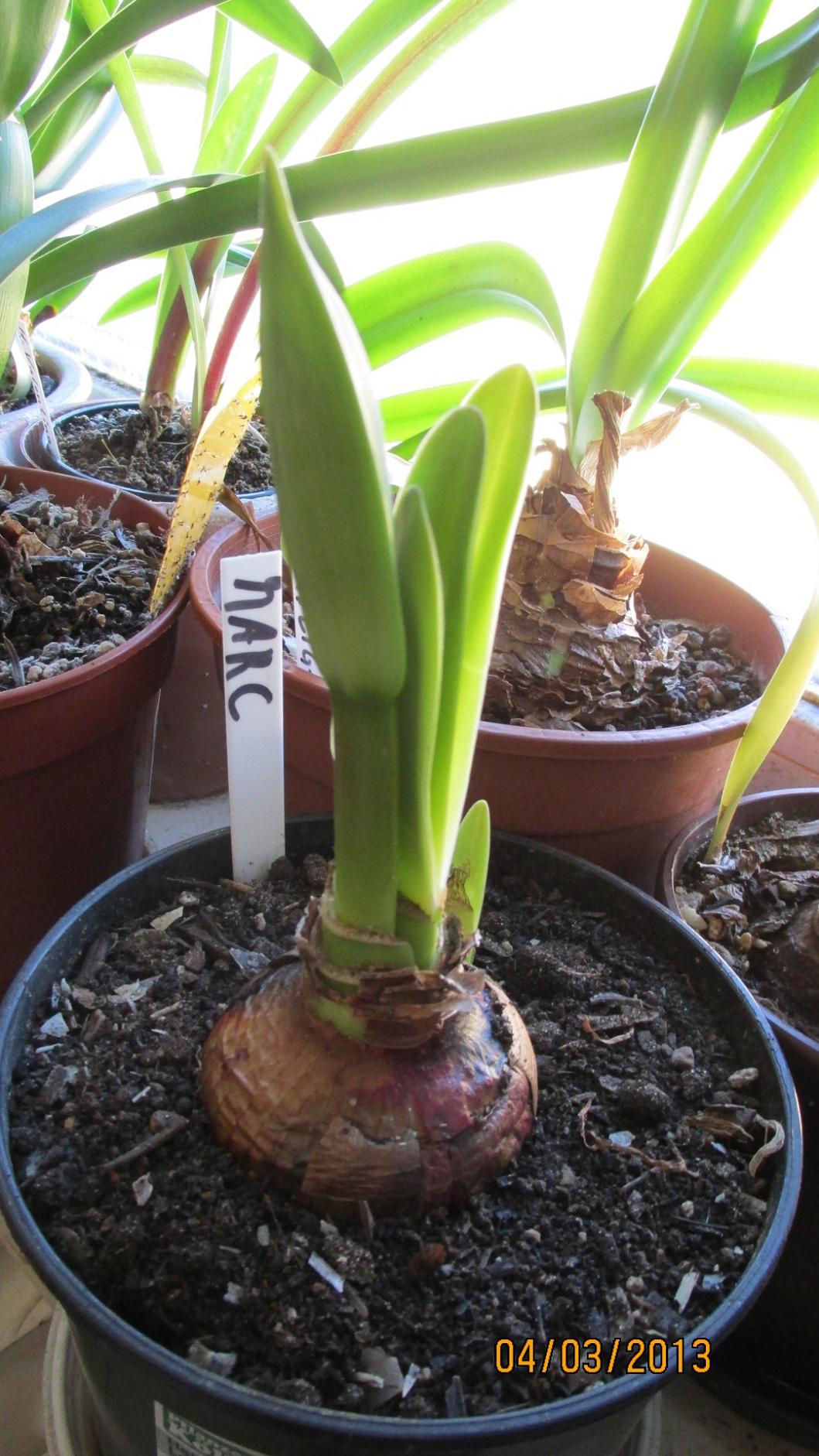 Ich hatte im Dezember doch diesen Topf mit den 5 Black Pearl gekauft, alles große Zwiebeln und alle mit 2 Blütenständen. Eigentlich wollte ich sie abblühen lassen, aber die begannen nach ein paar Wochen zu kümmern, also hab ich den ganzen Trempel auseinandergenommen. 2 davon konnte ich retten und die sind jetzt über den Berg. allerdings sind aus einem Zwiebeldurchmesser von 6 - 8 cm nur 3 cm übriggeblieben. Aber sie sind jetzt fest und treiben Blätter. Alle anderen waren bis ins Herz hinein gefault, teilweise mit steckengebliebenene und in der Zwiebel verfaulten Blütentrieben. Die habens nicht geschafft. Ich ärgere mich, daß ich sie nicht schon eher ausgebuddelt hatte. Aber die Blüten waren so schön ... Naja, mal sehen, was die 2 nächstes Jahr machen.