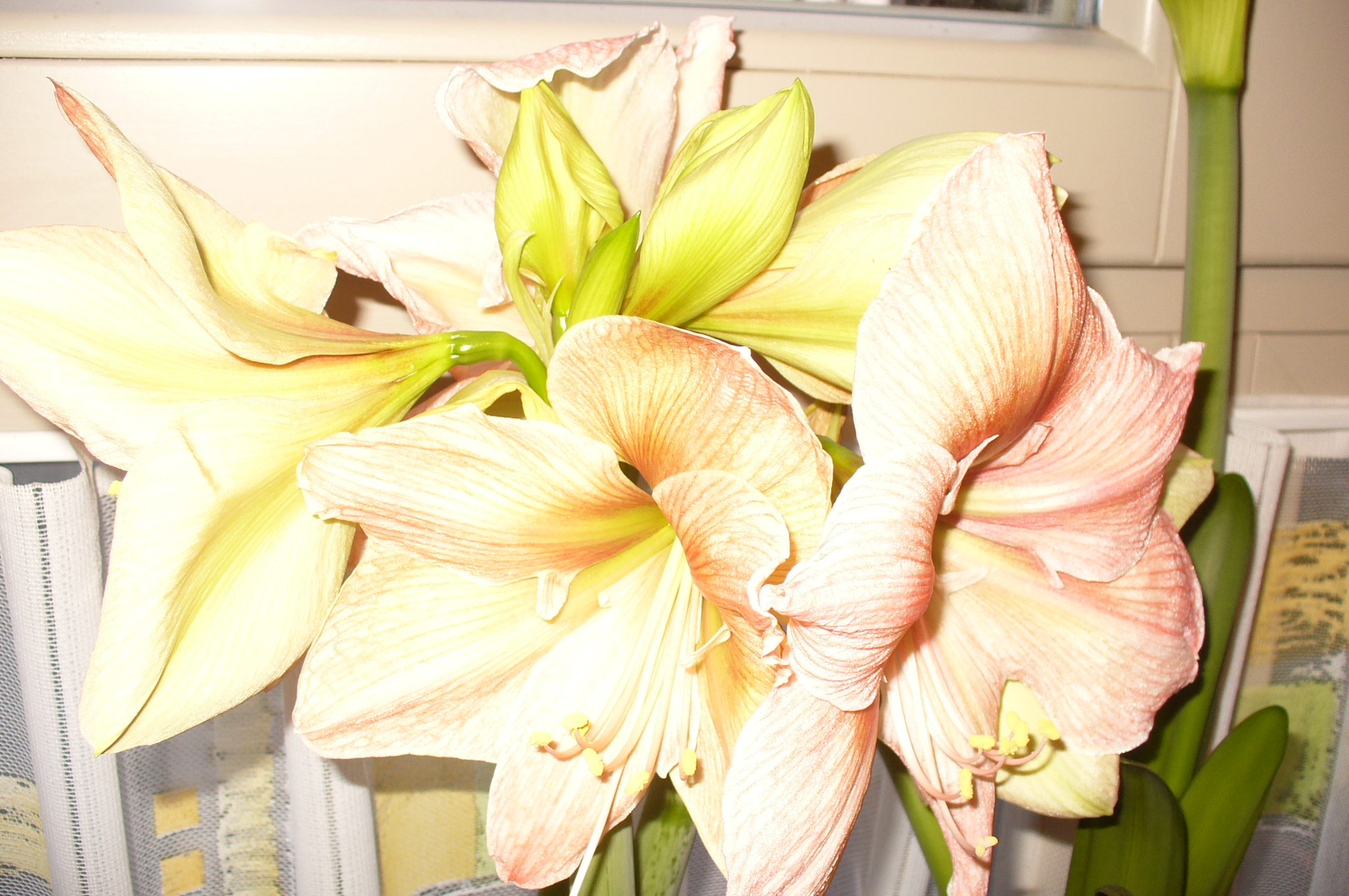 hier ein paar Bilder meiner aufgeblühten Amaryllis, die ich mir vor ca. 2 ½ Wochen auf der Garten München gekauft habe.
