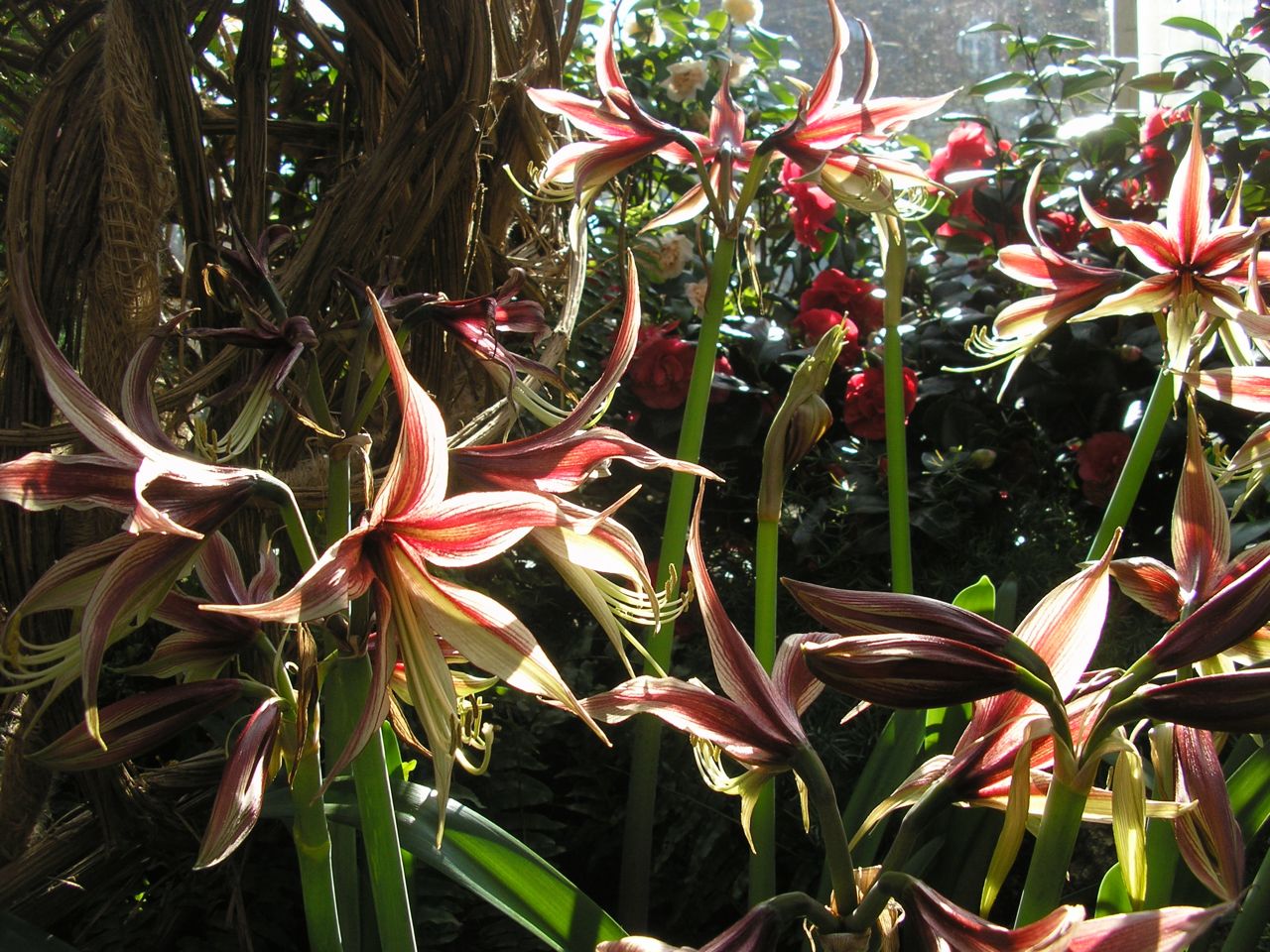 Im Spätsommer wird ausgetopft, Tochterzwiebeln entfernt, Wurzeln zurückgeschnitten, bei Erdhaltung frische Erde.
