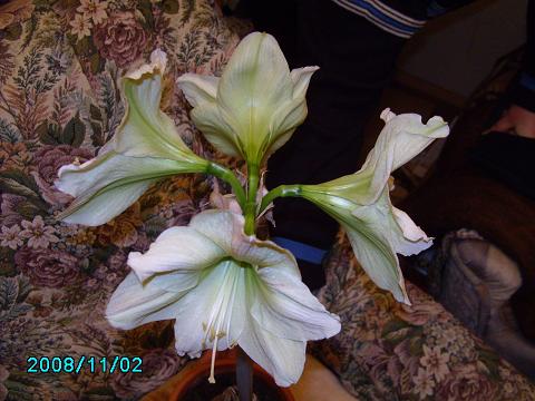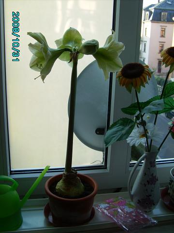 hier neue Bilder von heute - die Amaryllis ist eigentlich grün, aber irgendwie schimmert auch gelblich dabei, besonders wenn sie geblitzt wird