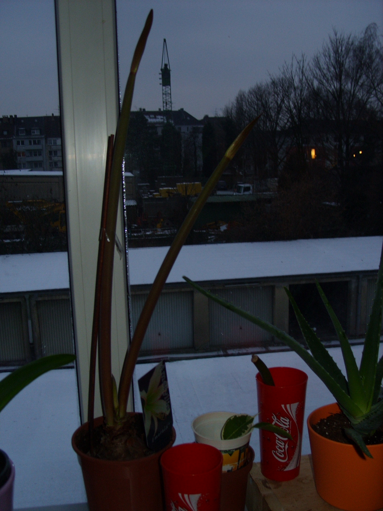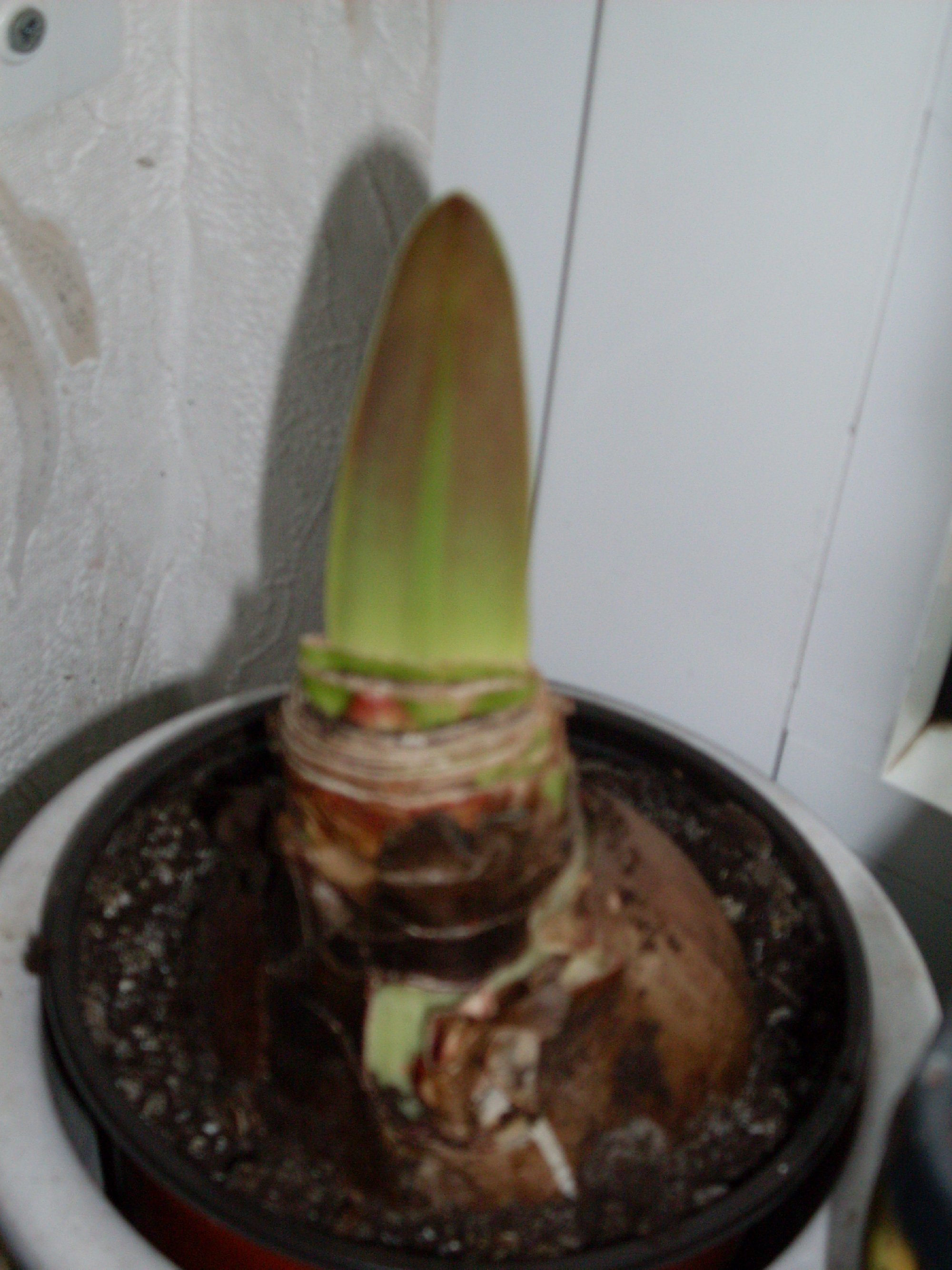 Amaryllis Christmas Gift bekommt eine Blüte - Amaryllis Charismaschläft noch.