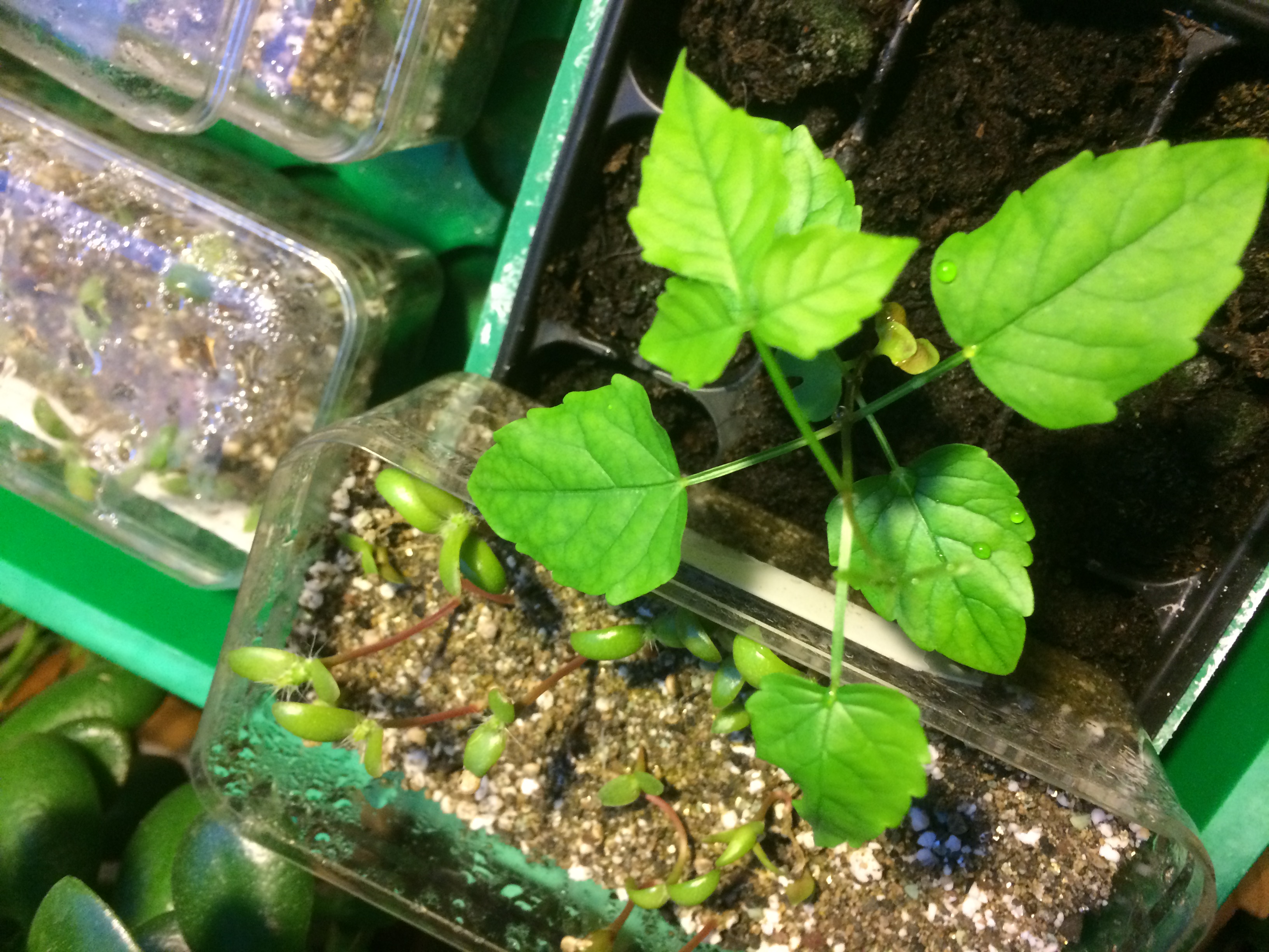 In einem meiner Töpfe kommt eine Pflanze. Eigentlich sind Klettertrompeten ausgesät.