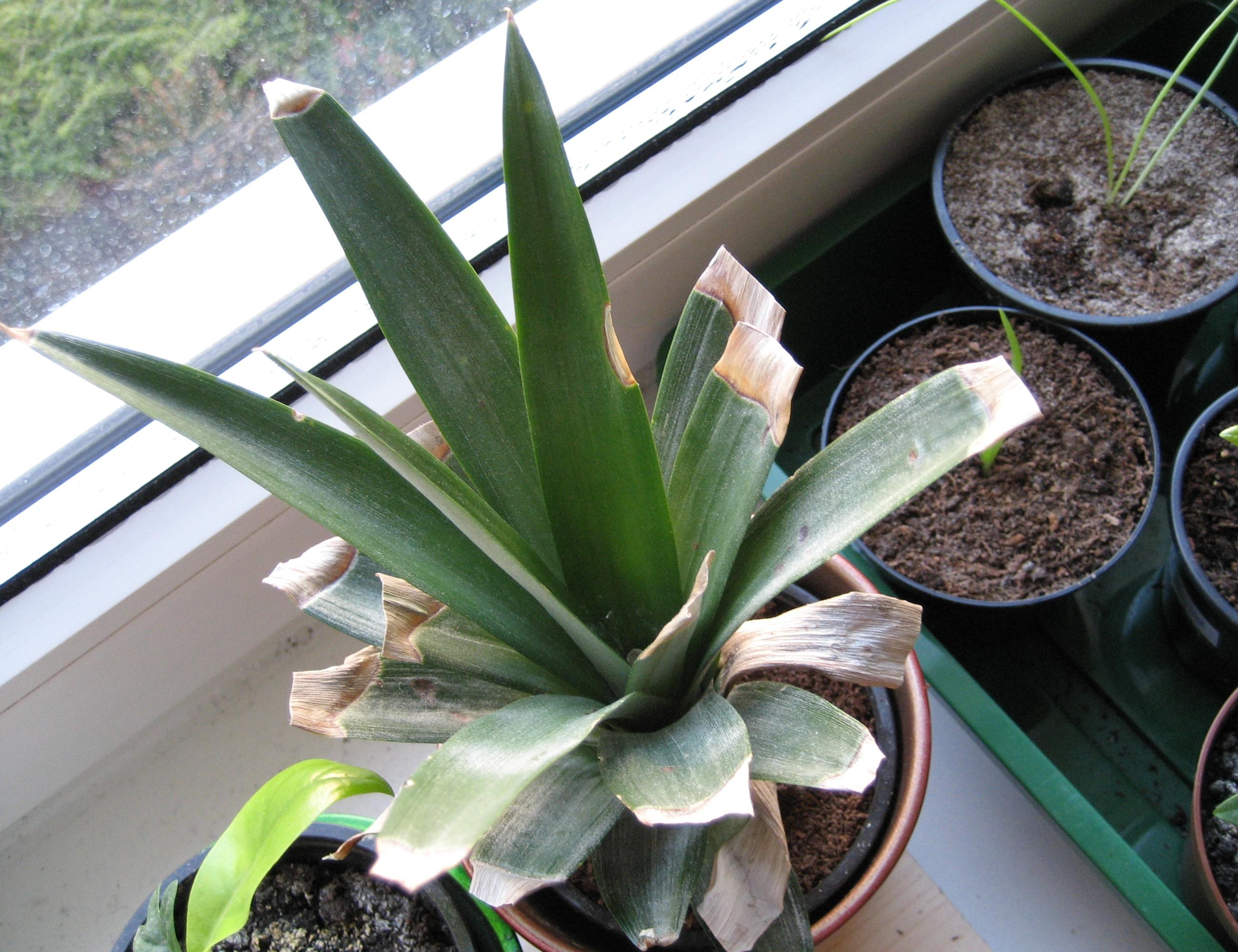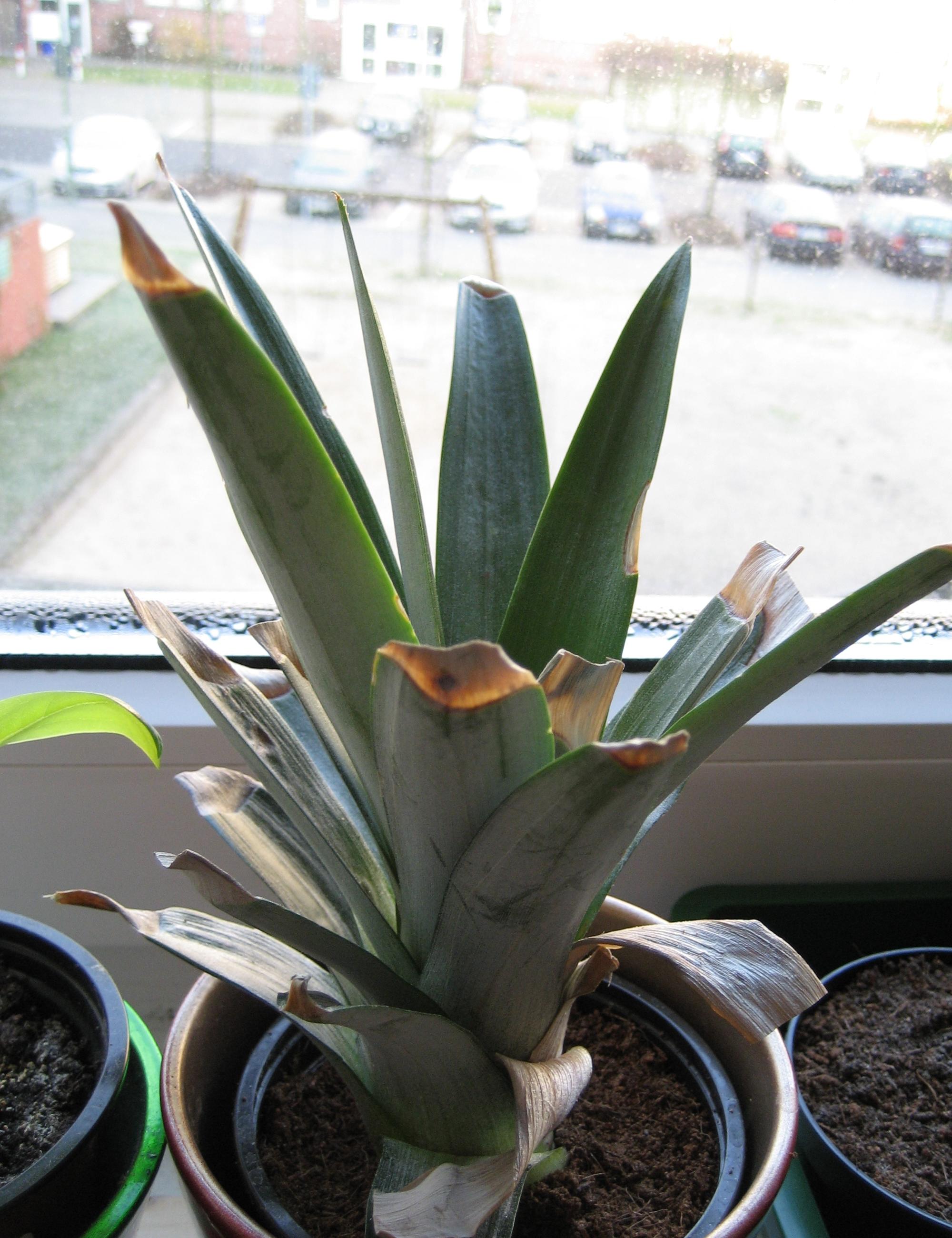 Wichtig, Ananas auf keinen Fall zu feucht halten. Die Pflanzen ausschließlich wenig in die Blätter gießen.