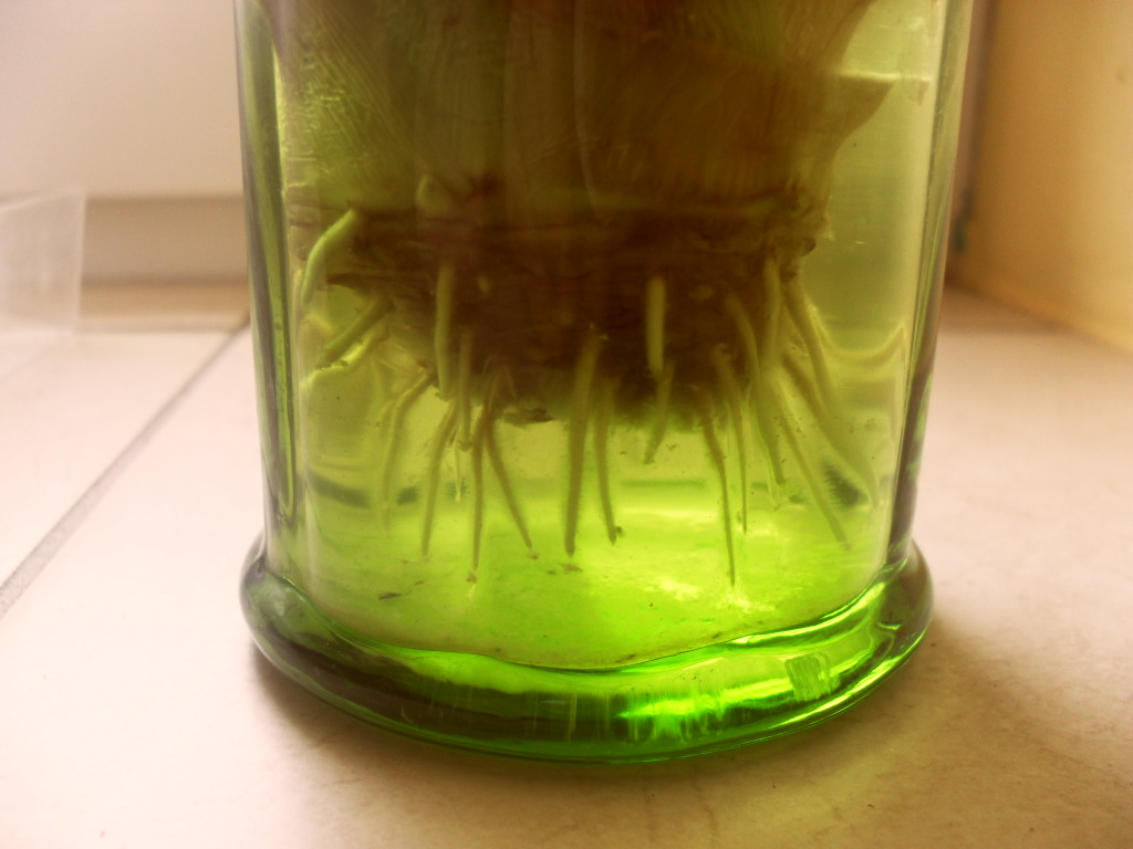 Nachdem ich sie im Wasserglas hatte ,hatten sich nach 2 Wochen auch ein bis zwei kleine Wurzeln gebildet.Habe sie dann noch 2 Wochen stehen lassen und danach waren es mehr als 20 gewesen.Habe sie dann eingetopft aus einem gemisch aus 1/3 Kokoserde und 2/3 Perlite
