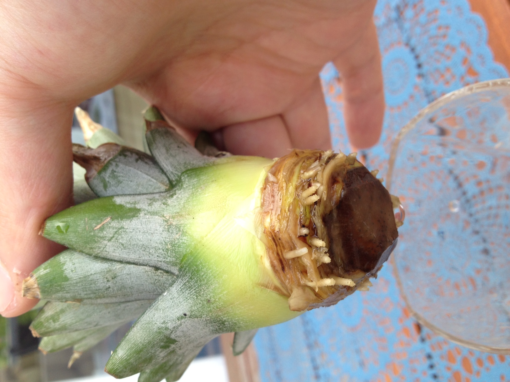Habe nun erfolgreich einen normalen Ananas-Schopf letztes Jahr zum wurzeln gebracht der mittlerweile an 4 Stellen ausgtrieben ist (Bild müsste auch hier im Threat sein) und vor ein paar Wochen eben den Schopf der Sorte "Victoria" mit Stacheligen Blättern zum bewurzeln gebracht.