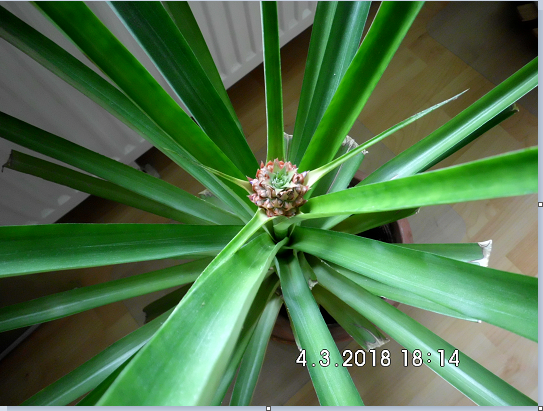 nach nunmehr 4 Jahren habe ich einen Zuchterfolg aus einer gekauften Ananas. Seinerzeit hatte ich den Schopf einer frischen und reifen Ananasfrucht in Blumenerde eingepflanzt. Das Ding ist gewachsen wie Hölle. Die einzelnen Blätter haben eine Länge von fast 1 m. Daher habe ich sie eingekürzt, da diese sehr spitz und scharf sind. Da kann man sich dran wehtun.