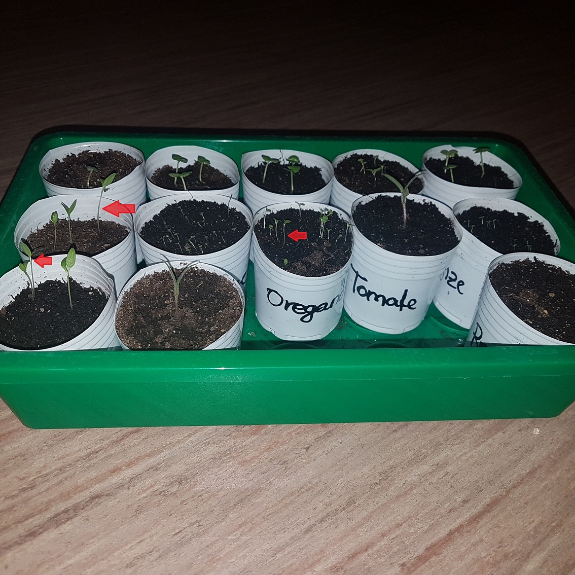 Alle wachsen ganz prächtig im kleinen Zimmergewächshaus an der Fensterbank und es ist schon erkennbar, dass sich nebst den Keimblätter das erste richtige Blattpaar bildet.