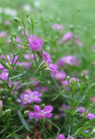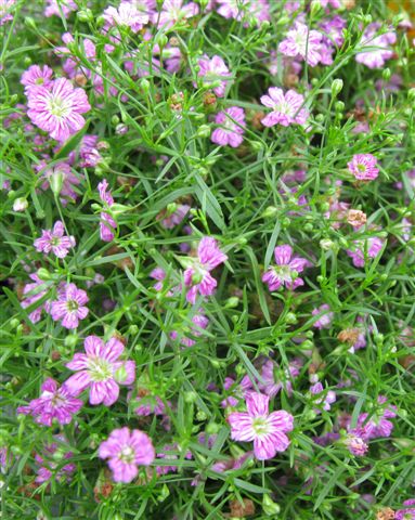 Die folgenden Bilder zeigen eine Zierpflanze, die bei EDEKA als "Myrte" deklariert war. Mir scheint es eher ein Nelkengewächs zu sein. Blüten-Durchmesser ca 10 mm; 5, im oberen Teil getrennte Kelchblätter; 10 Blüten- und 10 Staubblätter; 2-fädrige Narbe Fruchtknoten; Stengel gabelästig verzweigt; Gegenständige Blätter max. 1 mm breit und bis 20 mm lang.
