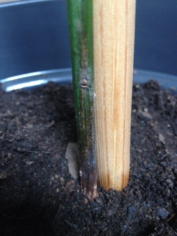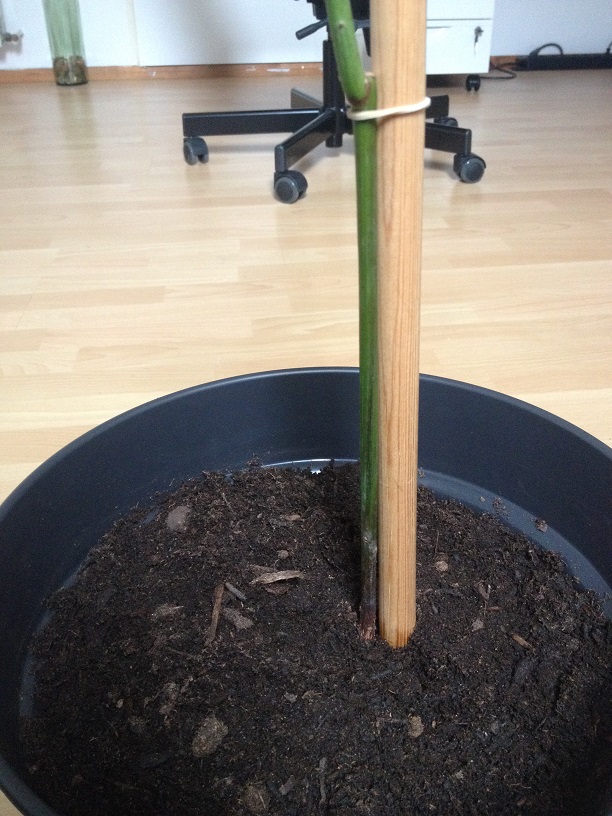 Und so ganz ohne Blätter braucht die Pflanze auch erst mal keinen Dünger.