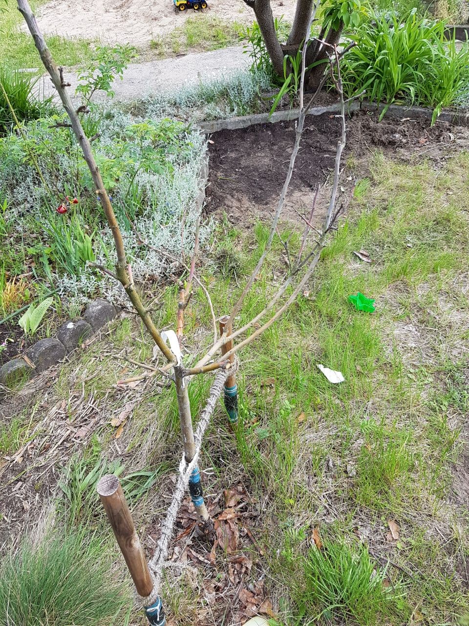 Es ist zwar eine "spätere" Sorte (August/September), aber müsste das Bäumchen nicht langsam wenigstens Blätter bekommen? Einige Zweige ließen sich abbrechen, andere sind dagegen biegsam... also total tot ist es nicht... woran kann es liegen?