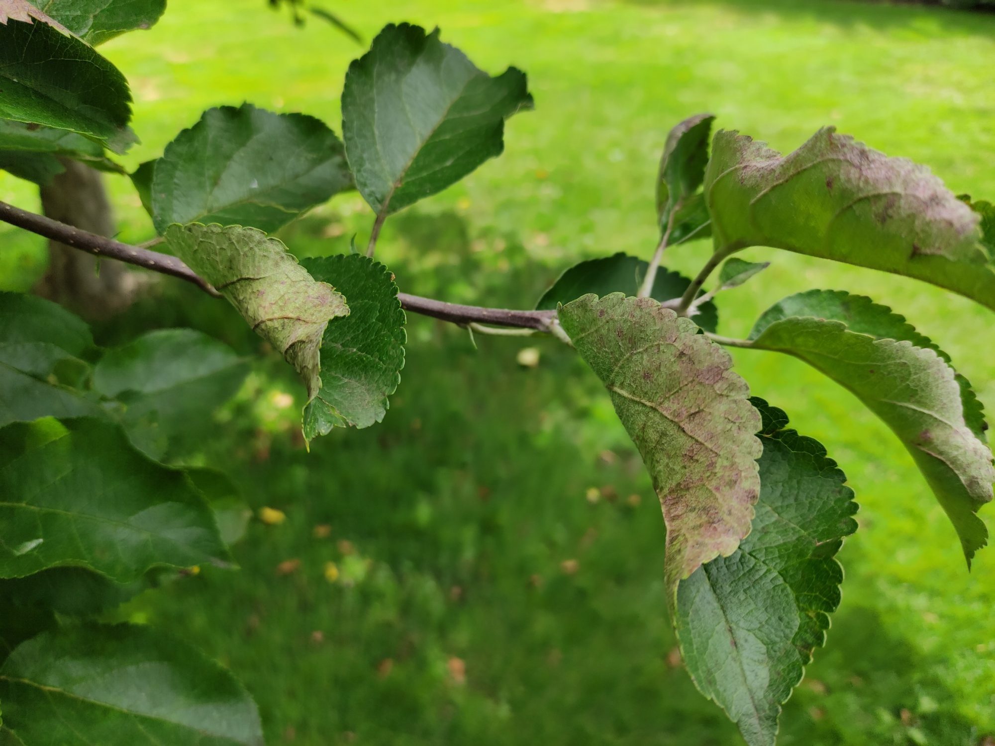 meine Apfelbäume haben irgend einen Pilz oder Schädlingsbefall. Jedoch konnte ich keine Insekten oder Spinnentiere entdecken. Was könnte es sein?