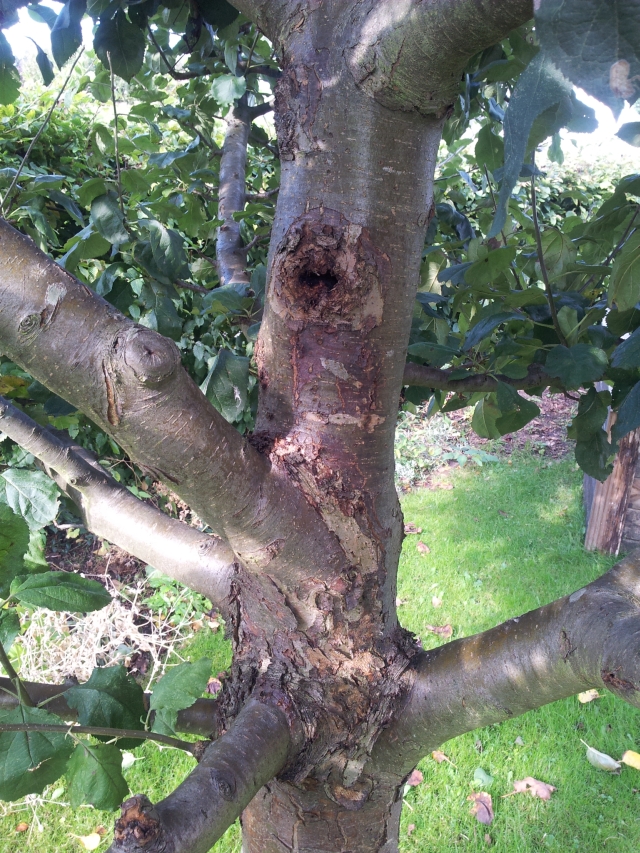Er hat im Stamm z.T. Löcher, wenn mann dort reinpieckst ist es weich und schwarz. Auch hat er Risse.