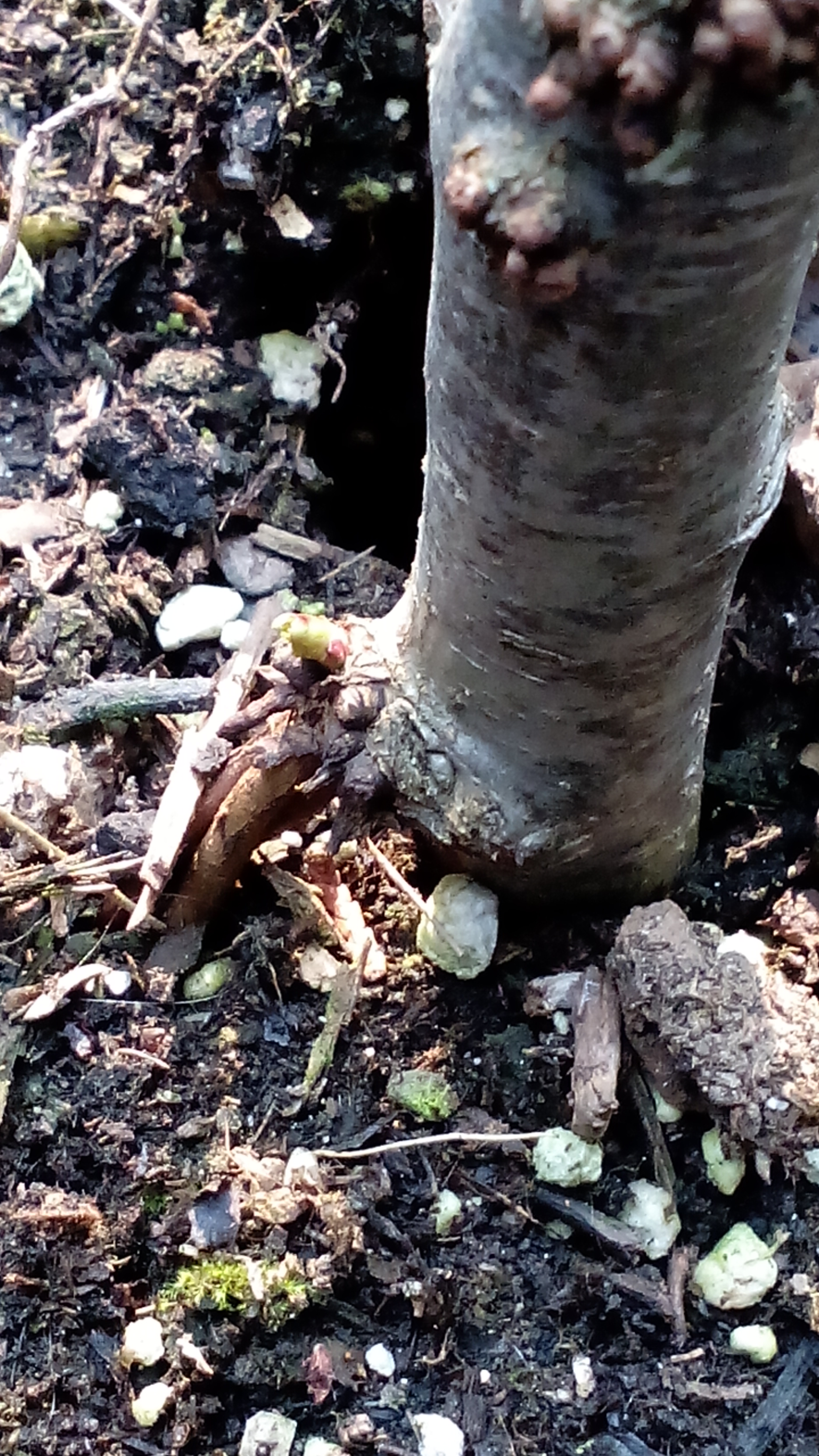 nun nachdem ich ja einen eigenen Garten habe, haben die es mir wieder mit den Topf zurück gegeben. Und was sehe ich da, unter der Veredelungsstelle hat sich da etwas getan und ist das eventuell ein wurzelansatz?