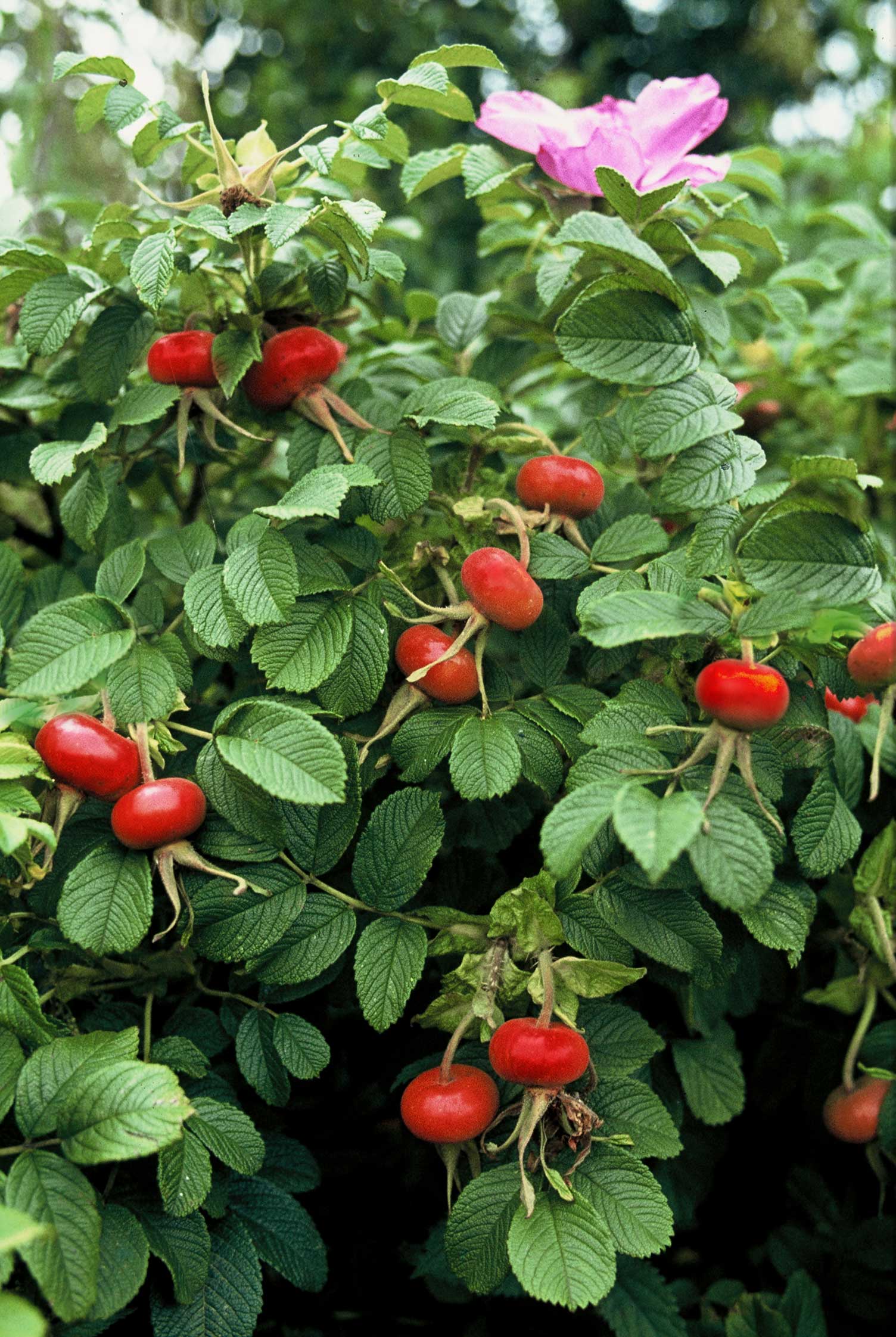 Eine weitere Köstlichkeit der einheimischen Herbstküche sind Hagebutten, die Früchte verschiedener Wildrosenarten. Sie werden selten oder gar nicht in kultivierter Form angebaut. Doch viele Wildrosen haben sich mittlerweile einen festen Platz in Gärten erobert, so dass die Früchte auch vom Menschen geerntet werden können. Wildrosen stehen nämlich auf der Hitliste der Futtersträucher für Insekten und Vögel ganz oben. Es gibt über 200 Heckenrosenarten mit den unterschiedlichsten Hagebutten. Nicht alle eignen sich zur Fruchtverwertung. Am bekanntesten sind bei uns die Hundsrose (Rosa canina) sowie die Apfelrose (Rosa rugosa). Am häufigsten trifft man auf die Hundsrose, die bis zu 3 m hoch wird. Ab Juni erscheinen die blassrosa oder weißen Blüten mit ihrem zarten Duft. Die Hagebutten reifen von Juli bis Oktober. Auch die Apfelrose blüht ab Juni mit zahlreichen, circa 8?10 cm großen Wildrosenblüten in kräftigem Rosa. Die Rosenblüten verströmen einen starken Wildrosenduft. Apfelrosen werden maximal 2 m hoch und bilden einen schönen, runden, dichten Busch. Ab Juli entwickeln sich neben den Blüten unzählige, große, leuchtendrote Hagebutten. Sie sind so ergiebig im Fruchtfleisch, dass sie hervorragend in der Küche zu Hagebuttenmark verarbeitet werden können.