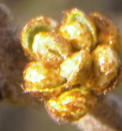 Knubbelig deshalb, weil der Blütenstand eher gestaucht und kurz geraten wirkt. Auf Bildersuche bin ich aber drüber gestolpert, dass die "draußen" wohl eher länger sind. Die Pflanze kann wohl einen Meter hoch werden, ich kenn sie aber nur ganz flach am Boden hockend. Jetzt hoff ich nur, dass meine nicht falsch beschriftet war... Aber die Gattung stimmt auf jeden Fall.