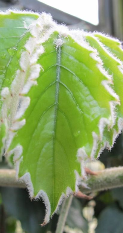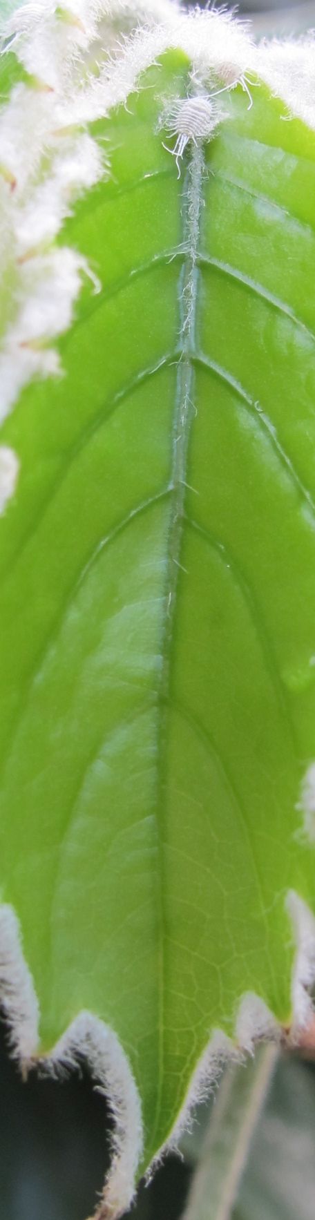 Ja, bis auf das einsame Tier, das sich frech ins Bild geschlichen hat, gehören die vielen Haare so. Und ja: es ist eine Zimmerpflanze. Edit: Es wirkt etwas haariger als es ist, weil es ein junges Blatt ist
