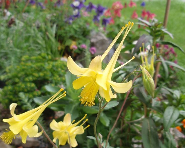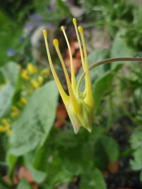 Blüte: Mai bis Juli, die Blüten ähneln auf den ersten Blick denen der bekannteren Goldakelei, sind aber kleiner, mit gleichzeitig längeren Spornen (bis über 10cm lang)