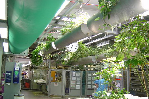 Die Einbeziehung der Pflanzen in die Architektur übernehmen bei agsn 'grüne' Fachleute, wie Jürgen Frantz. Der ehemalige technische Leiter des Botanischen Gartens der Universität Tübingen berät private und gewerbliche Bauherrn in allen Fragen der Außen- und Innenbegrünung. „Pflanzen sind Klimamacher," sagt Jürgen Frantz und erklärt dem privaten 'Häuslebauer' wie auch dem für ein Gewerbeobjekt Verantwortlichen: „Pflanzen haben eine Reihe positiver physischer und psychischer Effekte auf den Menschen. Sie vermitteln Wohlbefinden über alle Sinne, schaffen attraktive Raumbezüge und verbessern das Raumklima." Tatsächlich erhöhen Pflanzen durch ihre permanente Transpiration spürbar die Luftfeuchtigkeit und können dabei im Sommer die Raumtemperatur deutlich senken. Darüber hinaus entziehen sie der Raumluft erhebliche Mengen Kohlendioxyd sowie viele weitere bekannte Luftschadstoffe. Gleichzeitig produzieren Zimmerpflanzen Sauerstoff und tragen als lebendig Schalldämpfer hörbar zur Verbesserung der Raumakustik bei. Schon allein die Anwesenheit von Pflanzen in einem Raum bzw. der Anblick üppiger Innenraumbegrünung löst beim Menschen Wohlbefinden aus. Das wiederum senkt das Stressempfinden und erhöht nachhaltig die Kreativität und Leistungsfähigkeit.