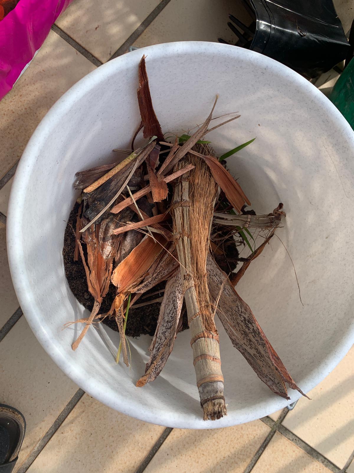 Die Erde von der Palme roch nicht mehr so gut und es war viel faules Zeug dazwischen. Daher hatte ich das mal komplett entfernt.